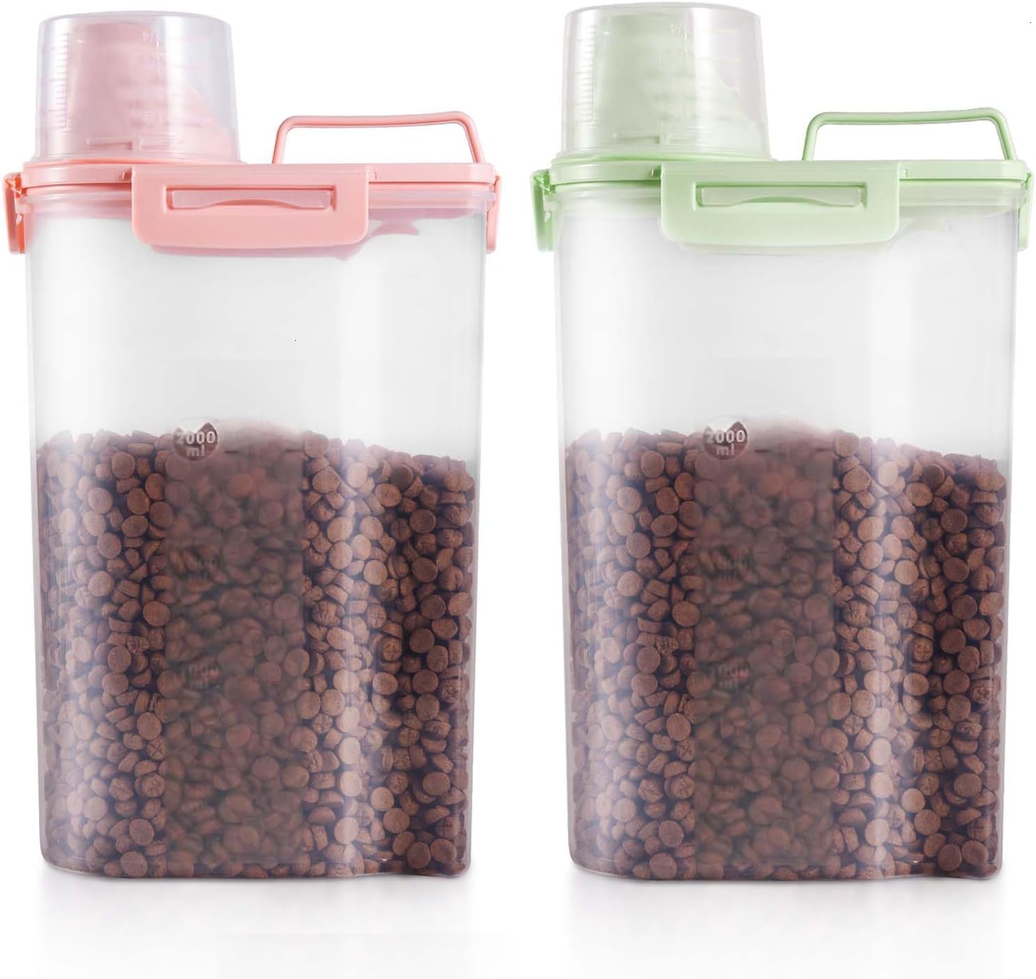 SenseYo 2 Pack 2.5lb Pet Food Storage Container with Measuring Cup, 3L Cat Food Storage Container Dog Food Storage BPA Free for Small Dog, Cat, Bird (Pink, Green)