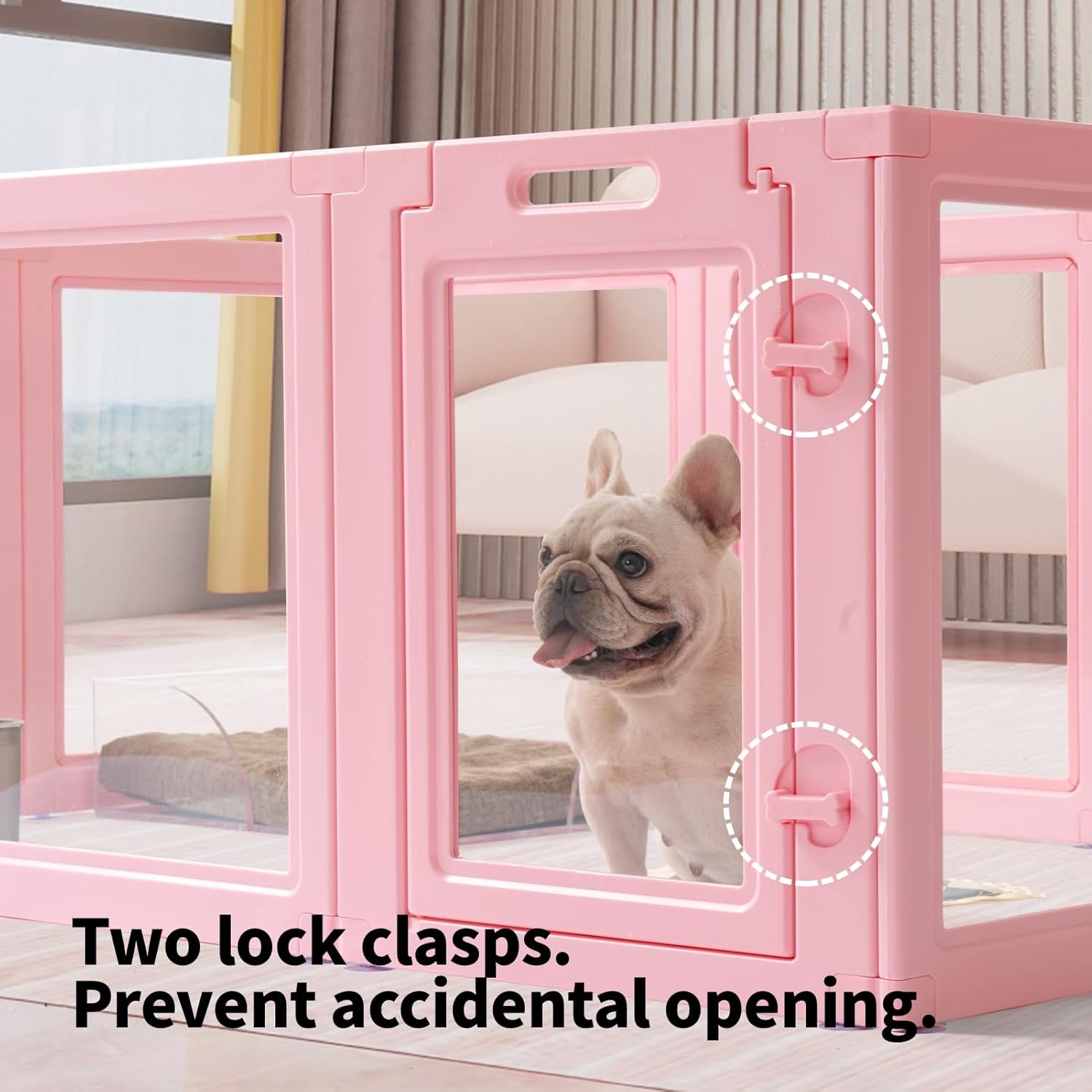 DIY Clear Acrylic Dog Playpen House,Quick Easy Assembly and Disassembly,Strong Floor Suction,Indoor and Outdoor Use,Easy Cleansing Puppy Fence (Sakura Pink, 23.6" H, 10PCS)
