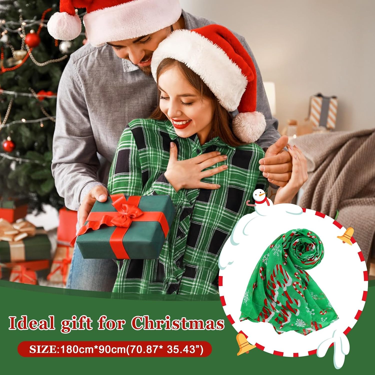 - Christmas Scarves Size:Our oversized scarf size is 70x35 inches(180cmx90cm).This is a great idea for a christmas gifts! Bring beauty and warmth to those you love