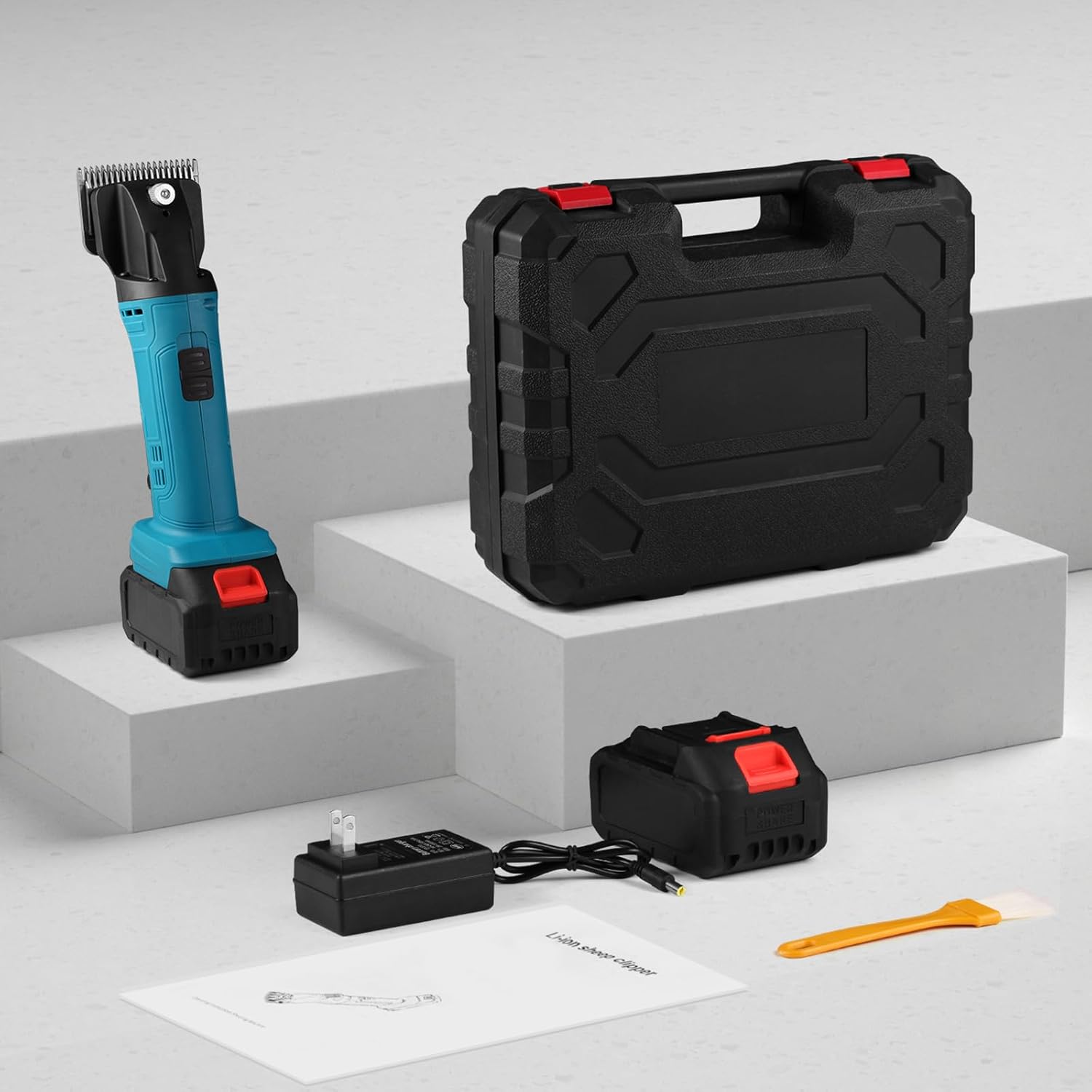 - 🐴【What can you get?】horse clippers set contains 1 * horse clippers,1 * packing box, 2 * 2500mah Backup Battery, 1 * battery charging adapter, 1 * oil bottle(not include lubricating oil), 1 * cleaning brush, 1 * manual