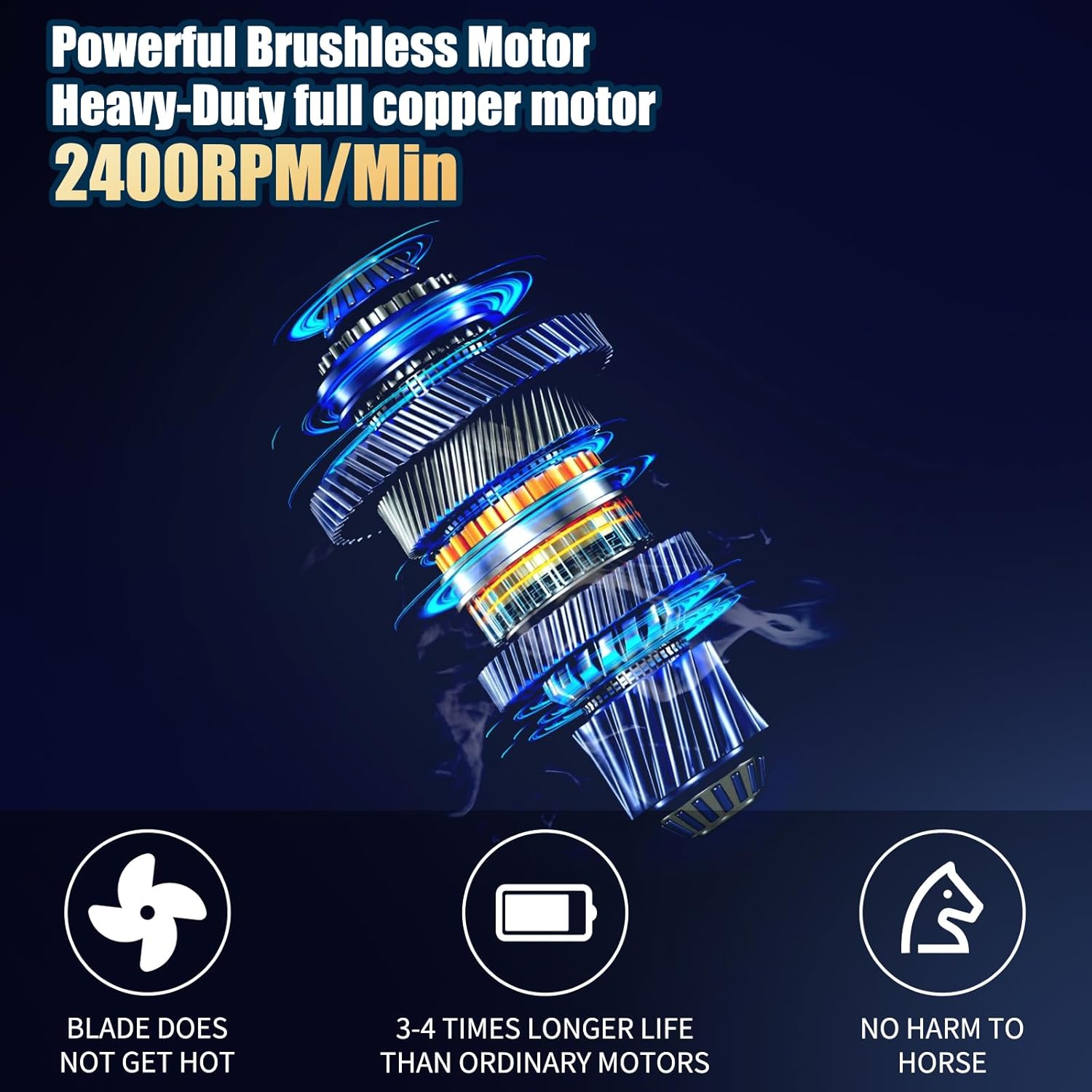 - 🐴【4H Long-Lasting Battery Life】The biggest highlight of this cordless horse clipper is long-lasting, specially equipped with a spare battery, which means no need to worry about power outage when working outdoors.With 2 batteries, it can work continuously for up to 4 hours, which is enough to deal with shaving 5 horses easily.