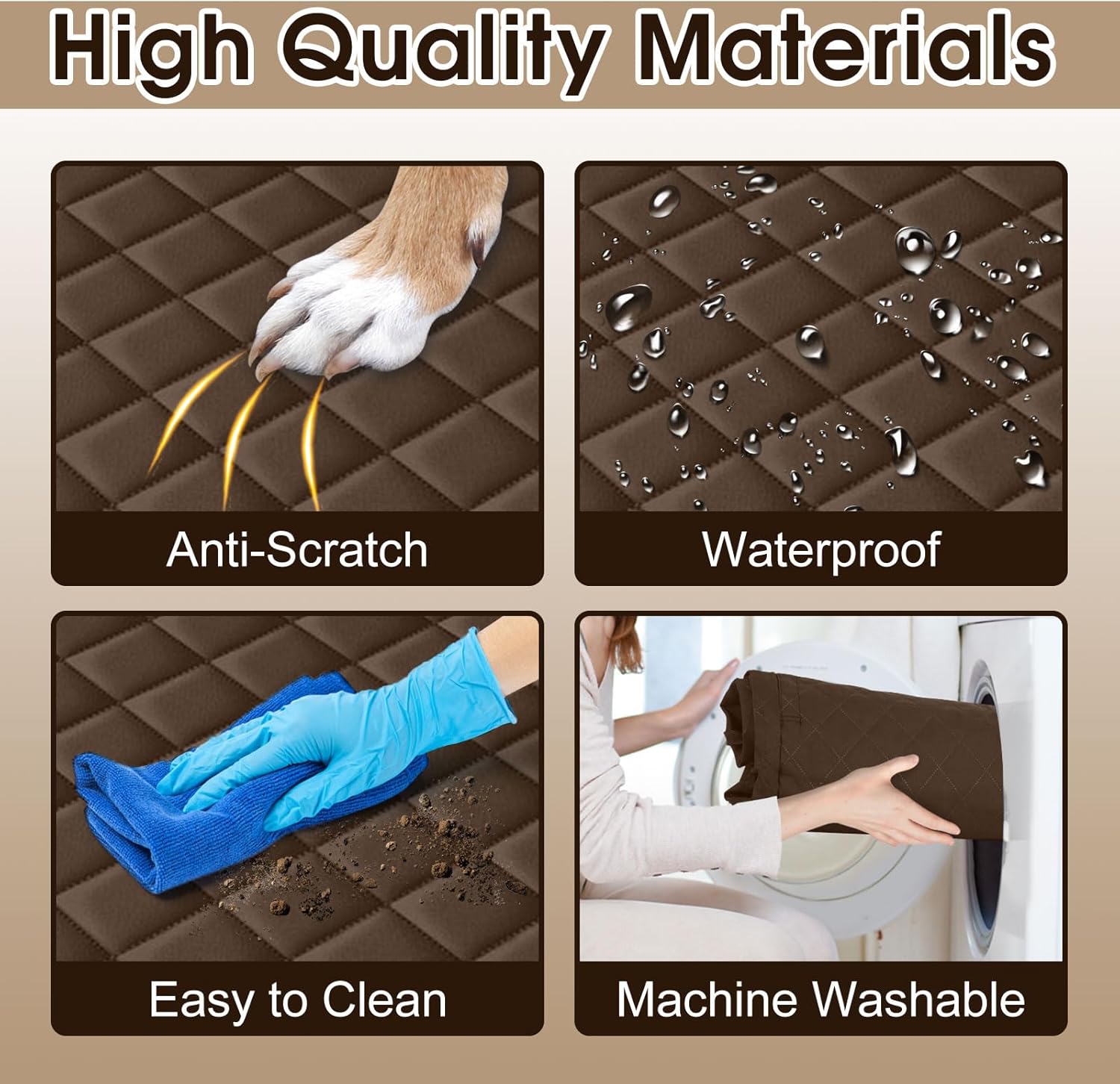 Waterproof Dog Car Seat Cover for Back Seat - Durable, Scratch Proof Pet Hammock with Nonslip Design & Storage Pockets, Fits Cars, SUVs, Trucks - L, Coffee/Black