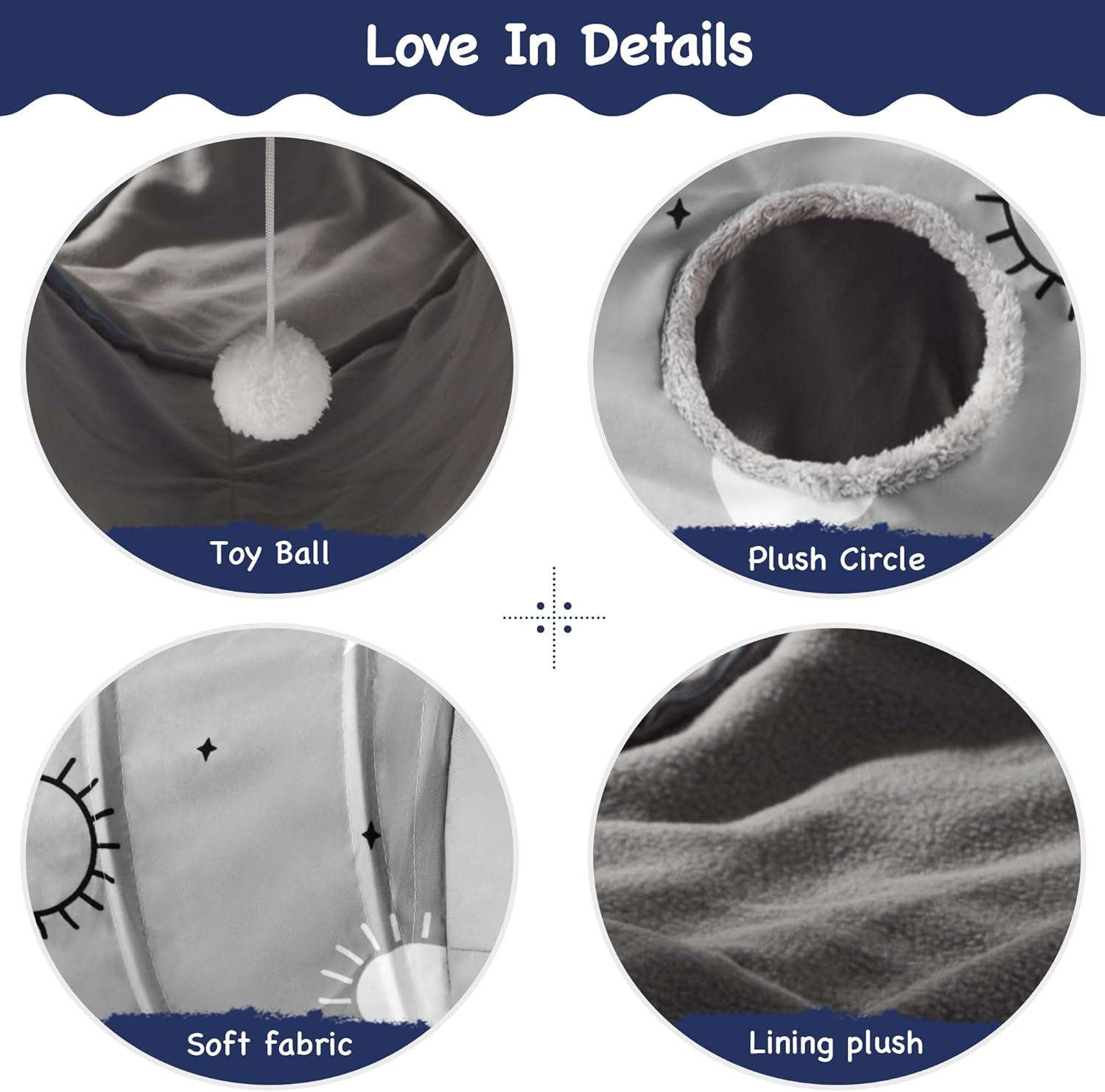 Tempcore Pet Cat Tunnel Tube Cat Toys 3 Way Collapsible, Cat Tunnels for Indoor Cats Fleece-Lined in for Warmth,Kitty Tunnel Bored Pet Toys Peek Hole Toy Ball Puppy, Kitten, Rabbit Gray Sun