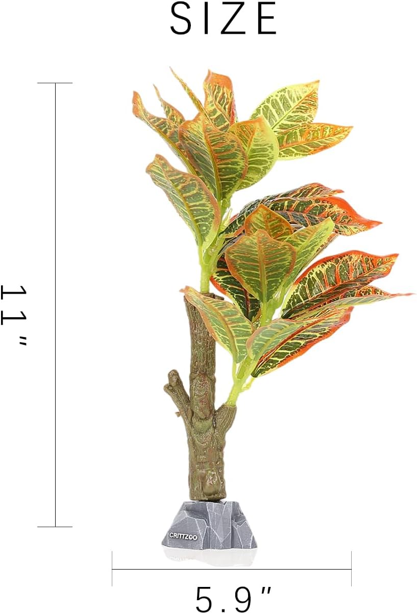 Reptile Terrarium Plants, Bearded Dragon Tank Decor Accessories For Ball Python Leopard Gecko Tree Frog Tarantula Lizard Corn Snake Tortoise Chameleon Crested Gecko - Fake Codiaeum Variegatum