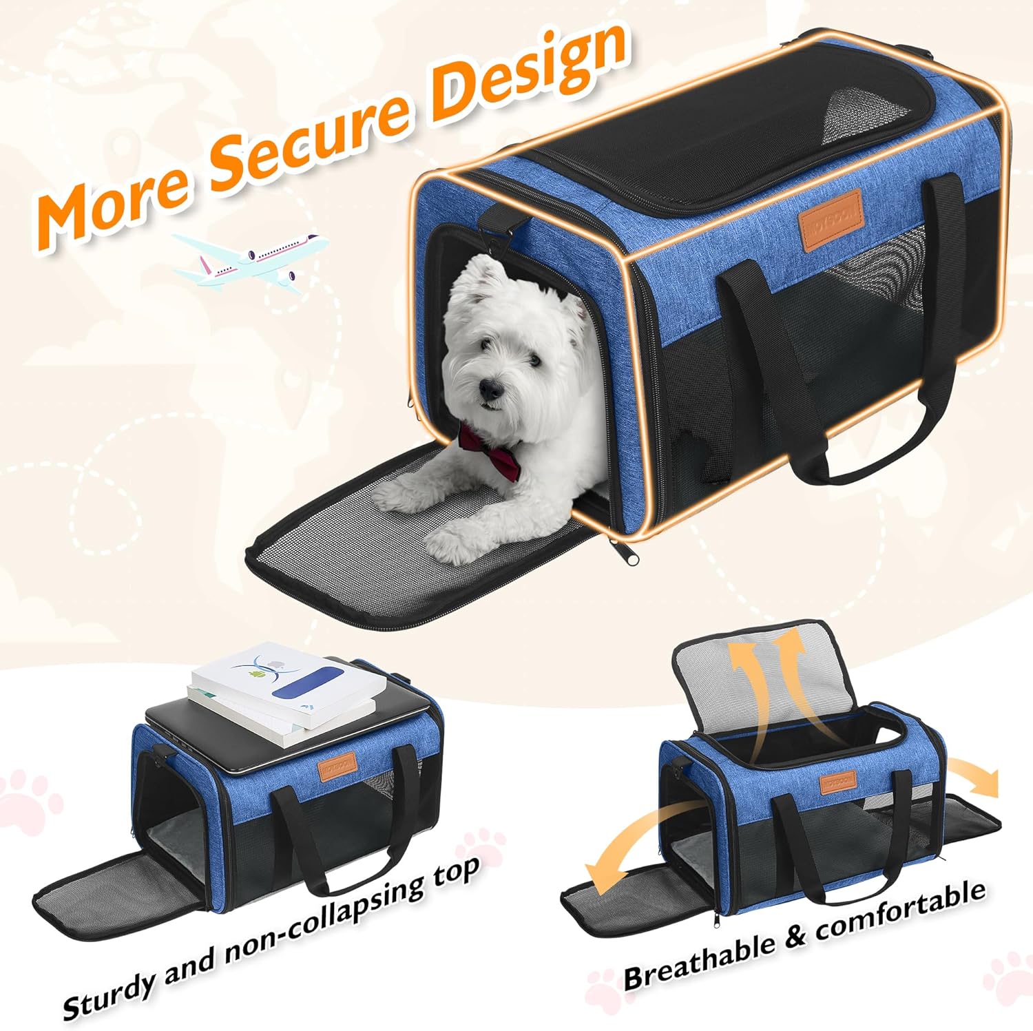 PETUX TSA Approved Pet Carrier in Cabin, 17"x11"x9.5" Soft Cat Carriers for Small Cats up to 12 lb, Top-Open Portable Dog Carrier with Litter Box and Anti-Scratch Mesh for Puppy up to 10 lb (Blue)