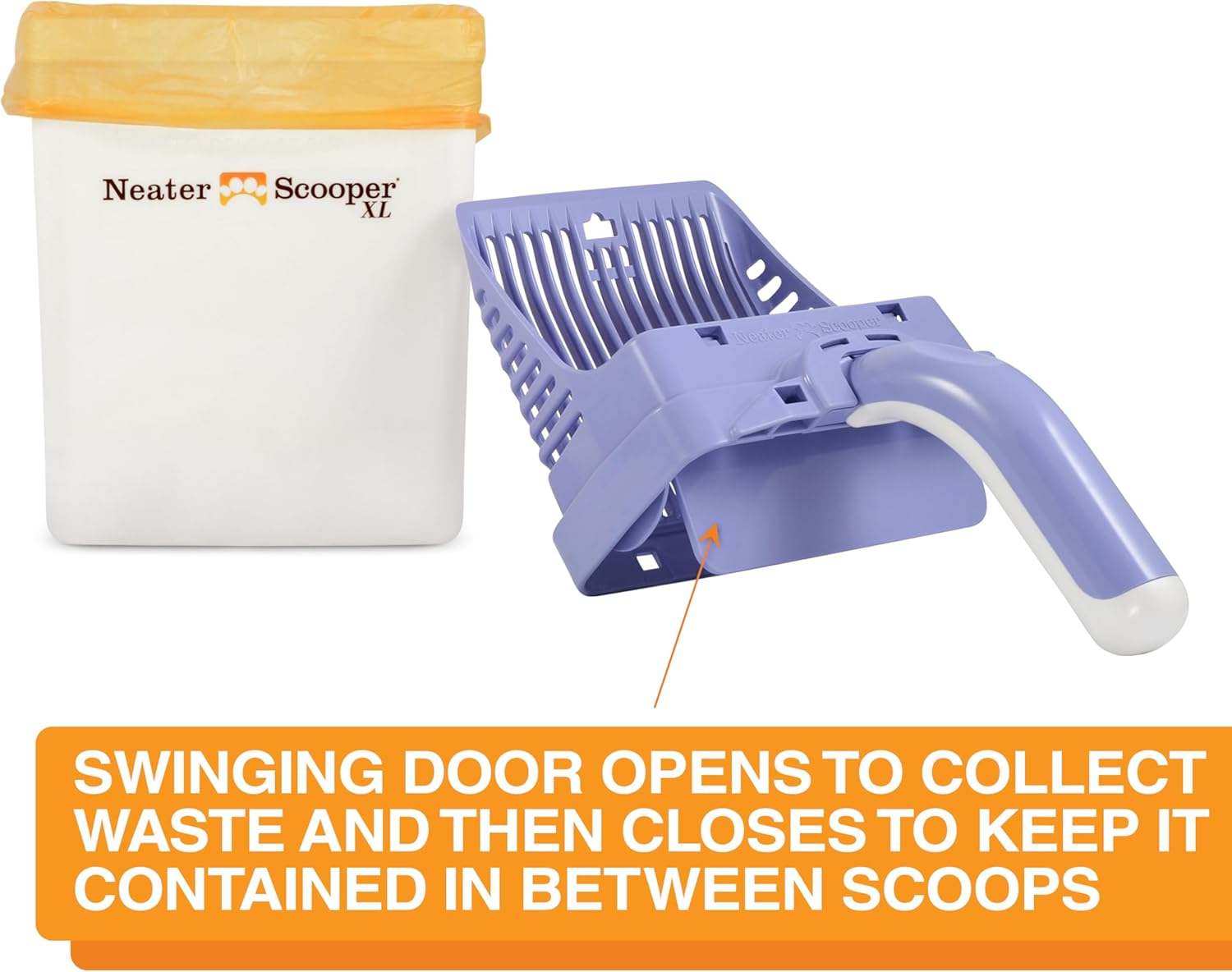 • NO MORE SPILLED LITTER: The Neater Scooper XL litter box scoop deposits waste directly into a bag, keeping your floors mess-free, reducing dust, and containing odors. Trap door contains waste between scoops. Works with all litter types except pellets. Patented & patents pending. Bin measures 7.5” H x 6.25" W x 3.5" D. Made in USA.