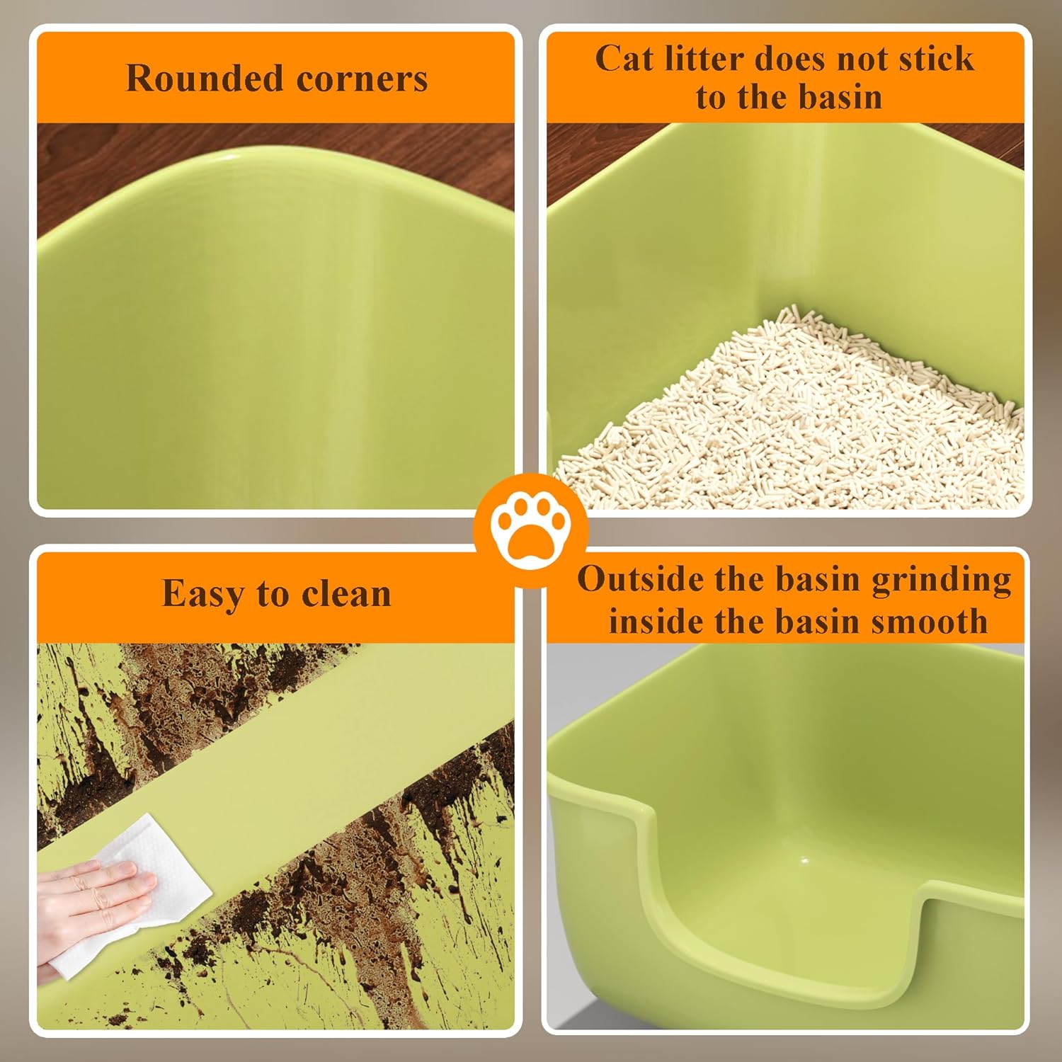 Large Cat Litter Box with High Sides, Open Kitty Litter Boxes Anti-Splashing for Indoor Cat Low Entry Cat Litter Pan for Small and Elderly Cats, Tool-Free Assembly(19.7” * 15.76” * 8.67” Green)