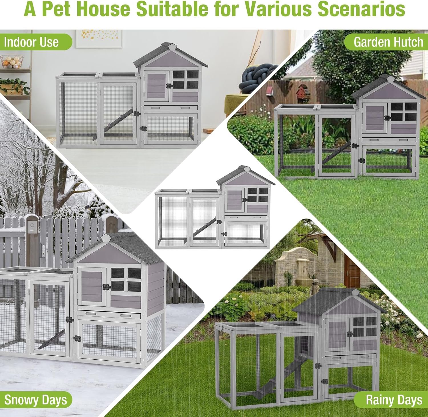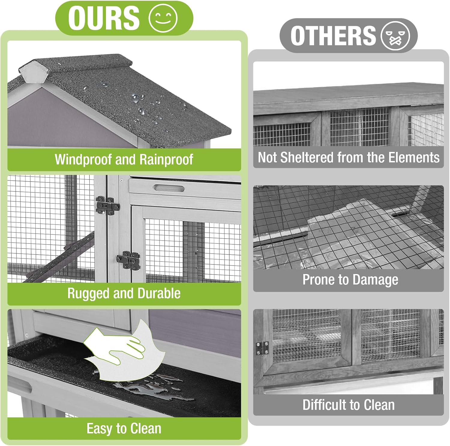 - EASY TO CLEAN: The rabbit hutch features a deeper, waterproof pull-out tray that won't leak and is easy to clean
