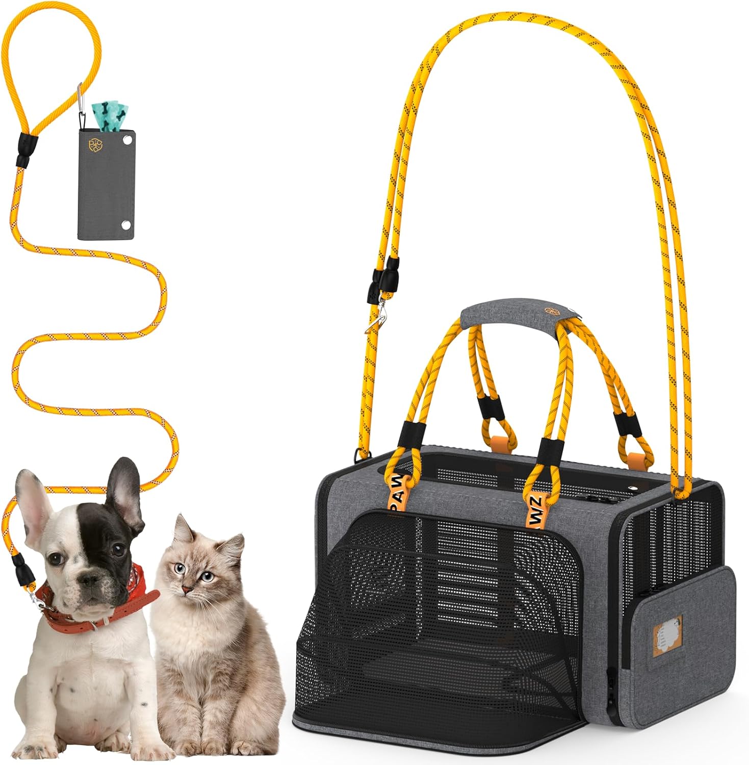 - Easy Access and Superior Ventilation: Designed with top load pet carrier and independent openings on both sides, plus an upgraded independent small door, making it effortless for your pet to enter and exit freely without the carrier collapsing. All anti-scratch mesh provides excellent visibility and air circulation, keeping your pet stays comfortable and calm.