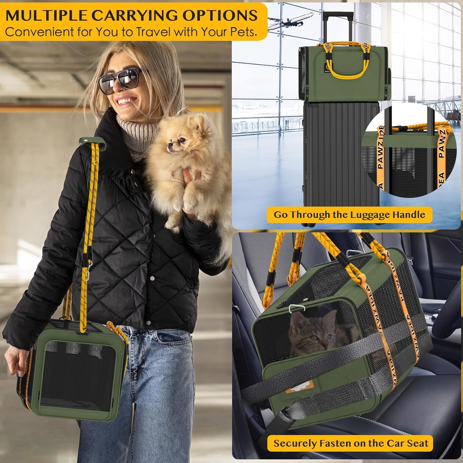 PAWZIDEA Expandable Pet Carrier w/ID Card, 18x11x11 in Small Dog Carrier TSA Airline Approved, Top Load Cat Carrier for 2 Cats Under Seat, Soft-Sided Collapsible Puppy Car Seat Dog Travel Bag, Up 15lb