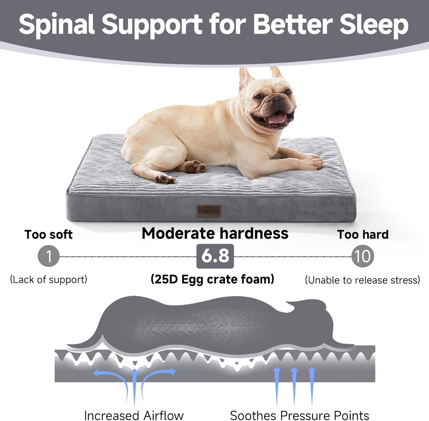 - Luxurious Comfort & Durability: Enjoy premium quality materials – plush corduroy surface with a 2-3 mm hair length, bonded with TPU for water resistance, and 25D Egg Crate Foam. Rest assured, our beds pass rigorous CP65 testing, ensuring safety and comfort for your pet.