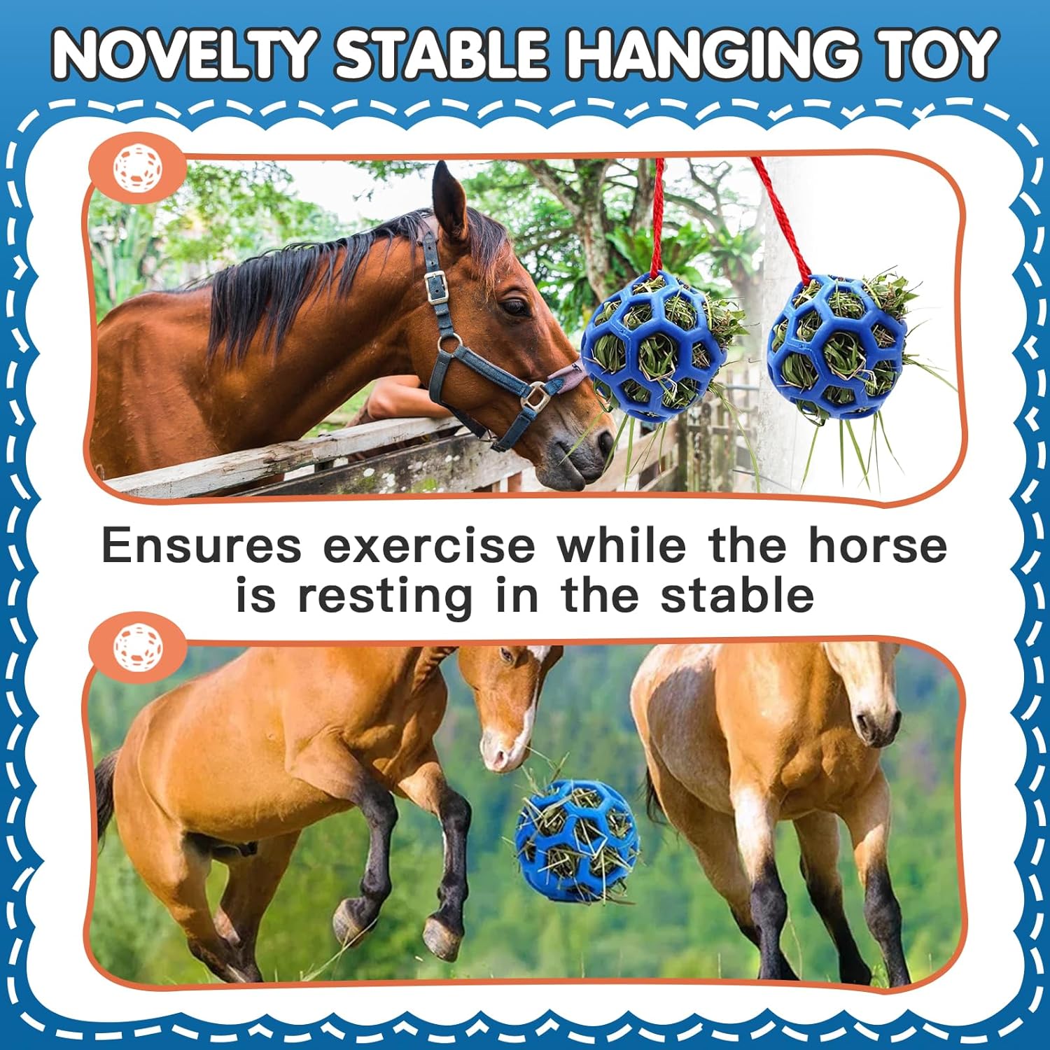 - Interesting Design: Designed as hay ball feeder for horses and keep your horse or pony entertained in the paddock or the stable