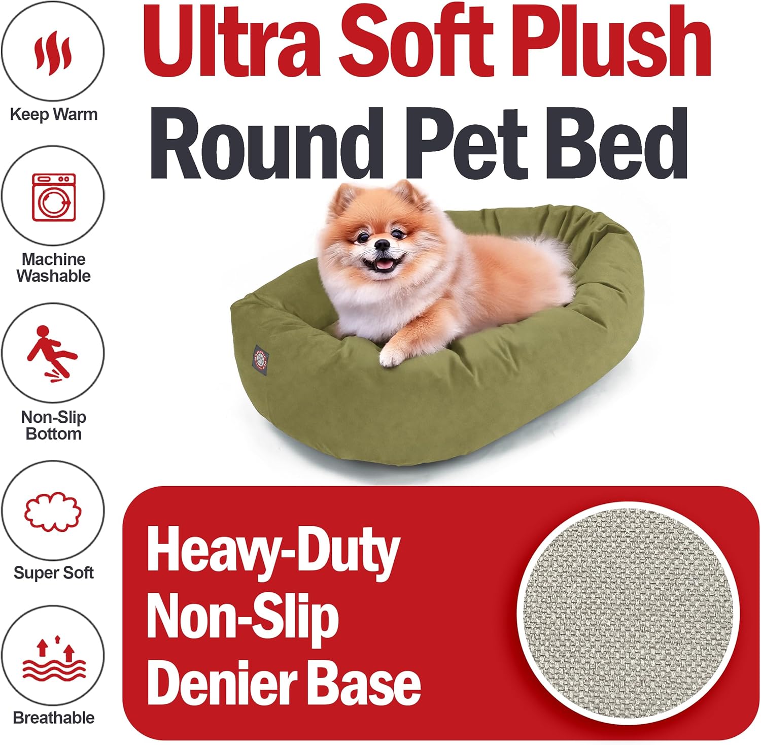 Majestic Pet 24 Inch Suede Shredded Memory Foam Mix Calming Small Dog Bed Washable 24 x 19 x 7 (Inch) - Cozy Soft Round Donut Dog Bed with Spine for Head Support - Pet Bed Sage