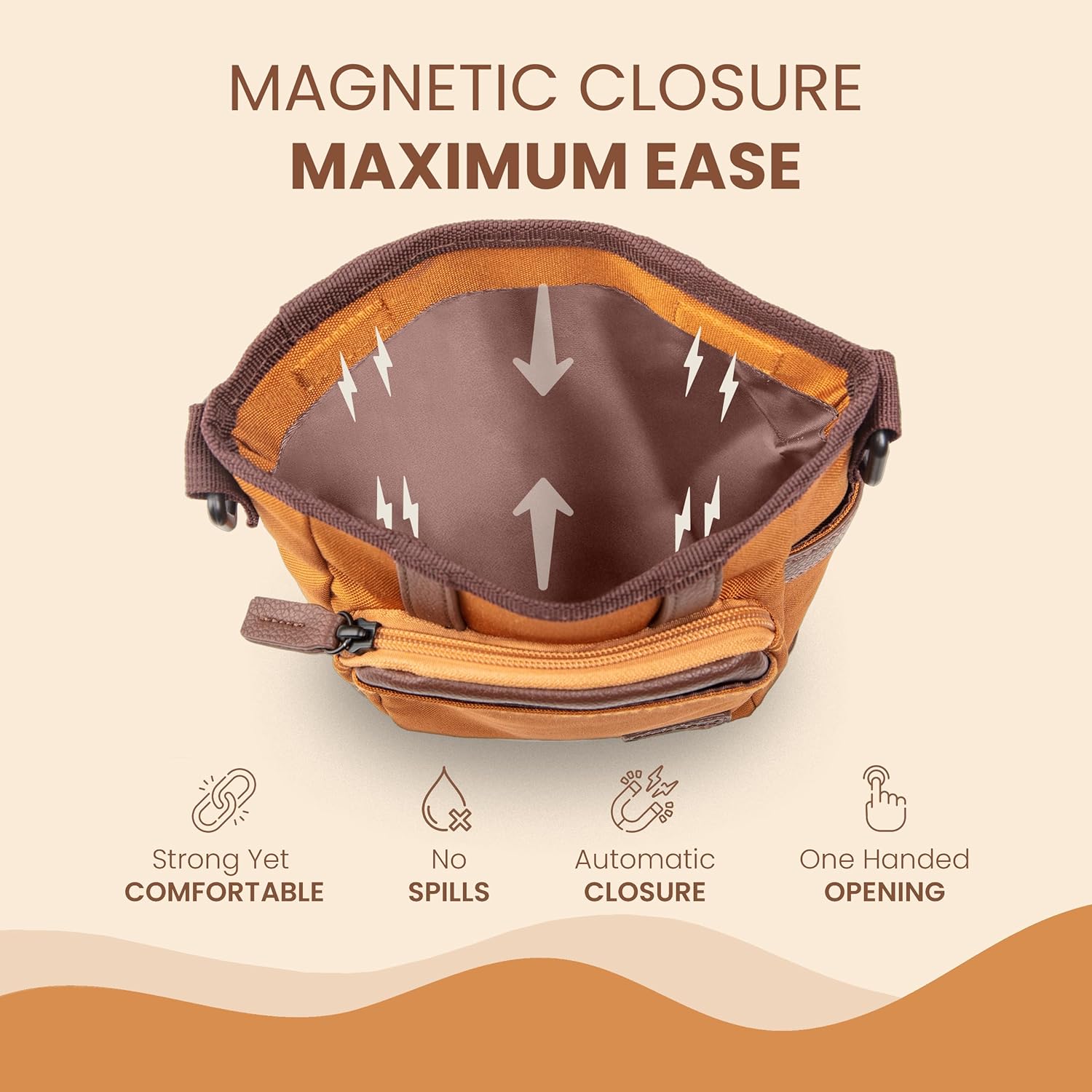 - 【EFFORTLESS ONE-HANDED ACCESS】 - The magnetic closure of this puppy treat pouch ensures fast access to treats, allowing you to reward your dog effortlessly during training sessions or walks without breaking the flow.