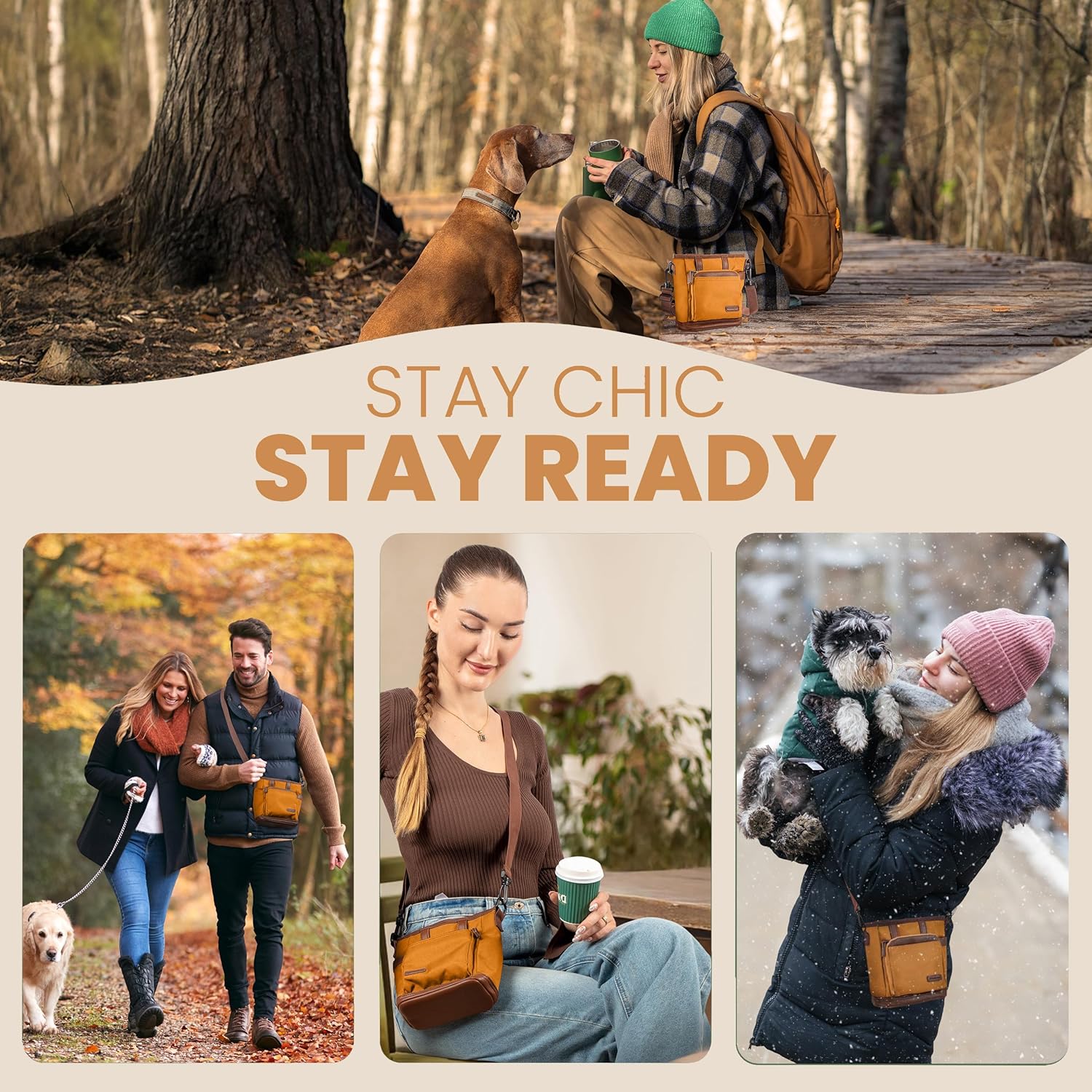 - 【ALL-IN-ONE STORAGE】 - With ample space and an expandable pocket, this dog walking bag holds treats, training tools, and poop bag rolls, easily holding your phone, keys, wallet, tennis ball, and documents, making it a great companion for long walks or outdoor adventures.