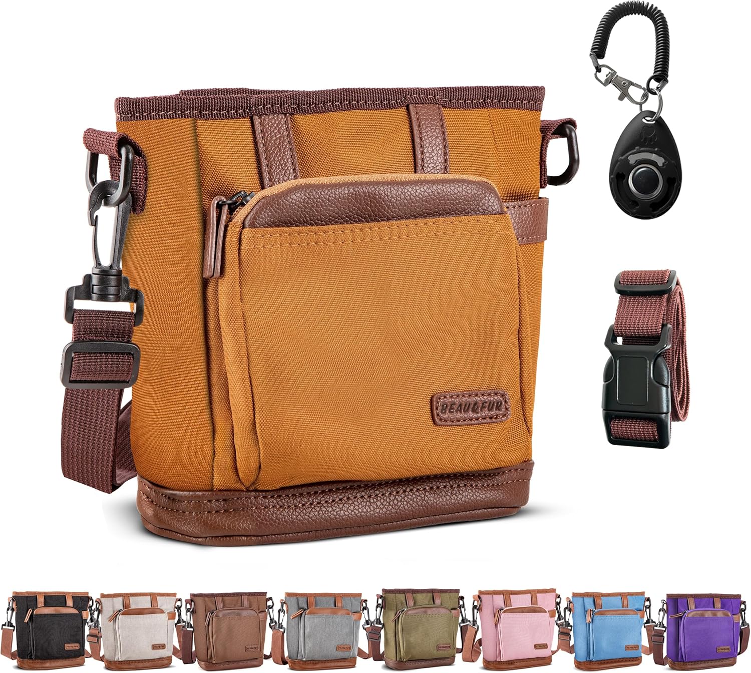 BEAU&FUR Dog Treat Pouch with Clicker for Training - Hands-Free Dog Treat Bag with Magnetic Closure, Built-in Poop Bag Holder Pocket