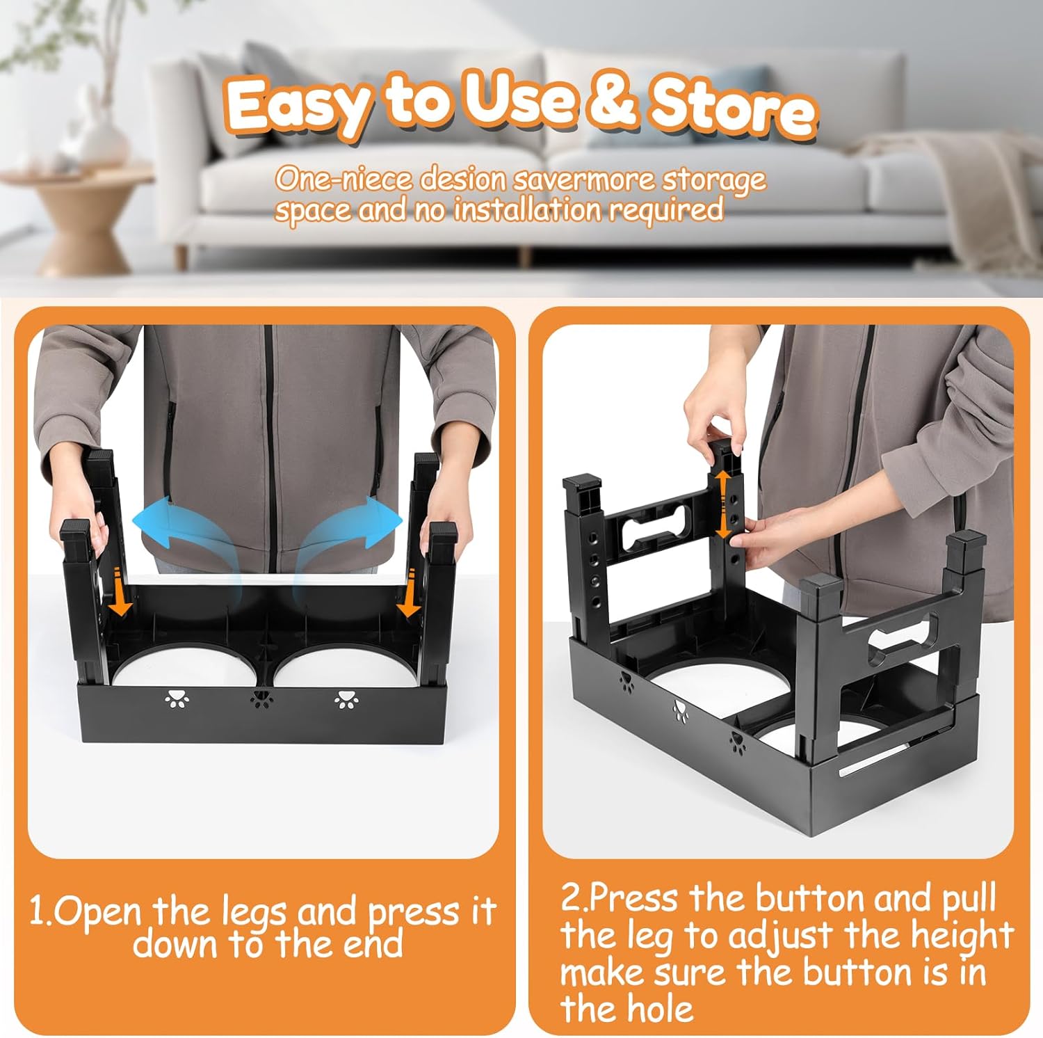 - 【All-In-One More Easy To Use】: Customized 4 heights can be achieved by only adjust the lift button. The legs can be fold placed under the feeding platform for a clutter-free space storage.