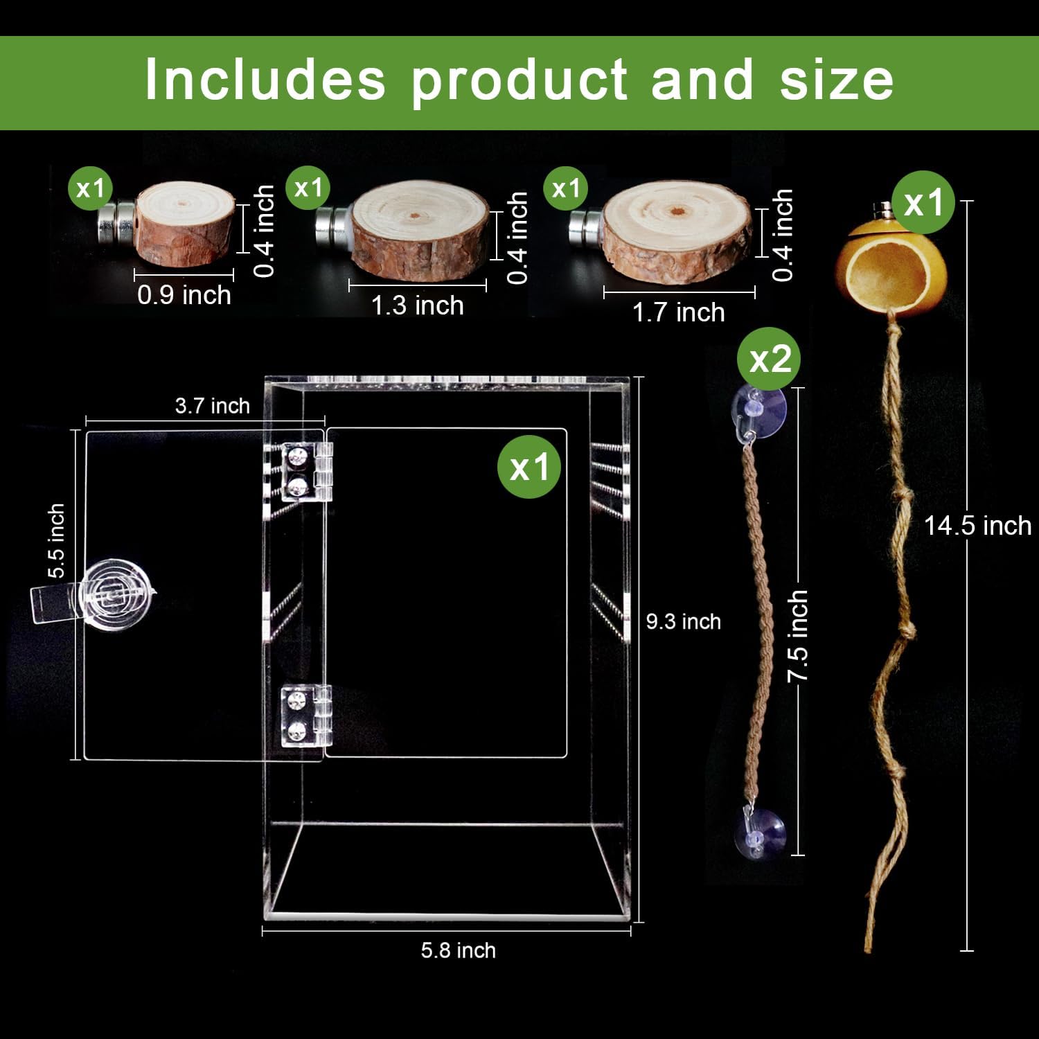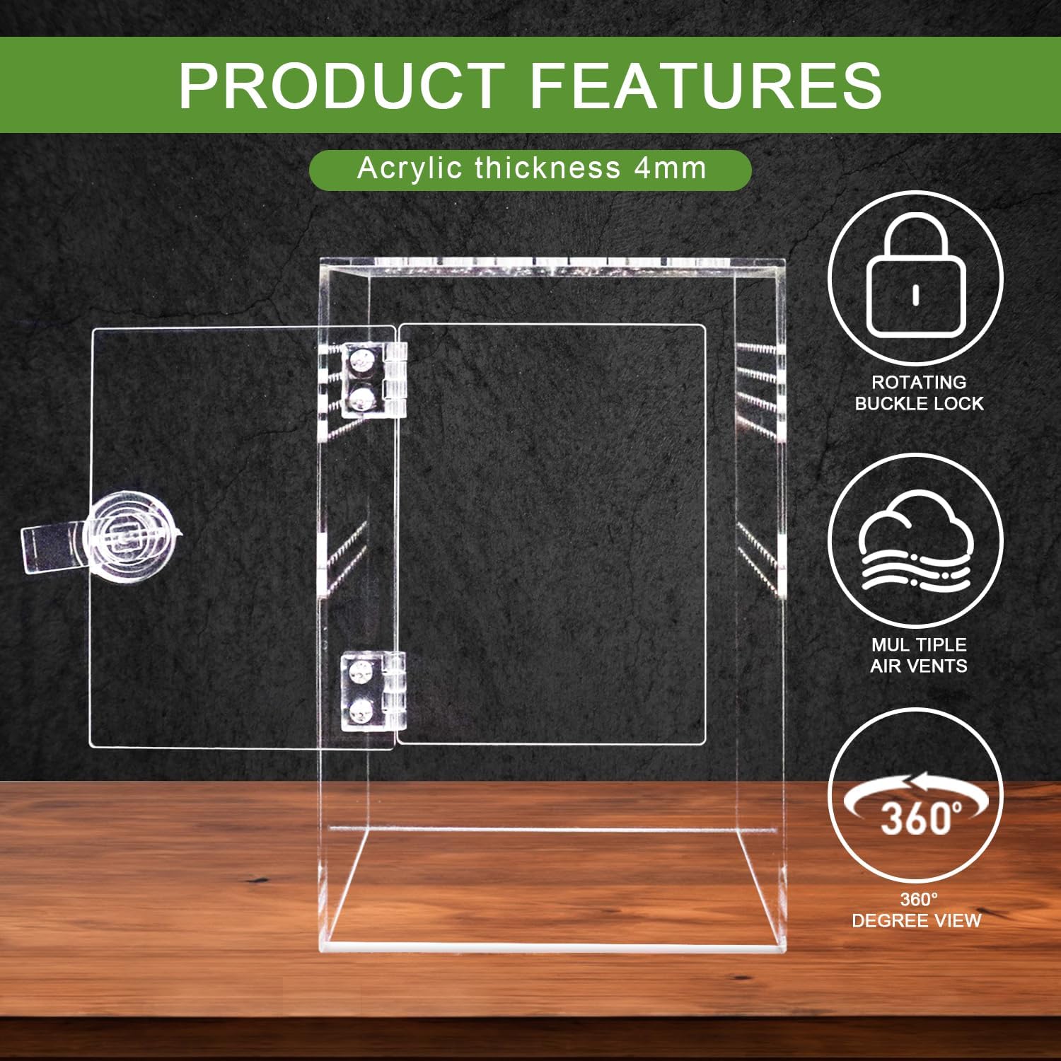 - 【Durable and Transparent Acrylic Enclosure】Our spider enclosure is crafted from high-quality thick acrylic, which is resistant to yellowing or clouding over time, ensuring clear 360-degree views, more convenient for you to clearly observe the the behavior of pets at any time and anywheres