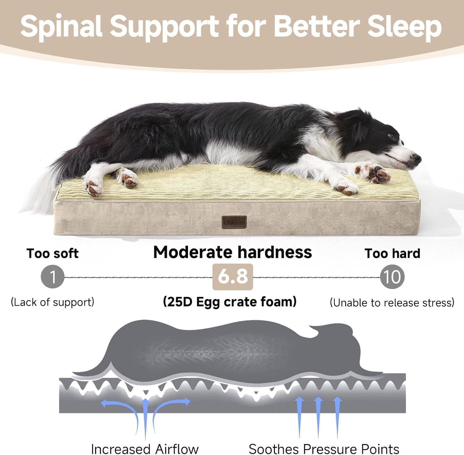 - Luxurious Comfort & Durability: Enjoy premium quality materials – plush corduroy surface with a 2-3 mm hair length, bonded with TPU for water resistance, and 25D Egg Crate Foam. Rest assured, our beds pass rigorous CP65 testing, ensuring safety and comfort for your pet.