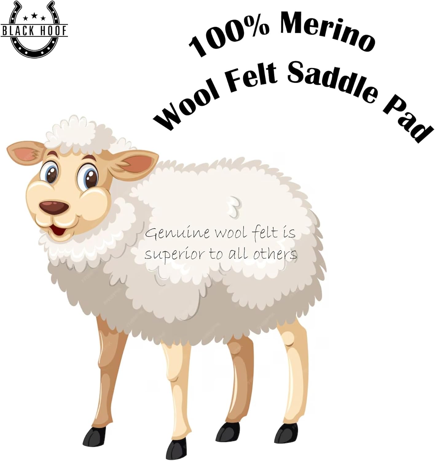 - PREMIUM MERINO WOOL FOR SUPERIOR COMFORT Crafted with 100% steam-pressed Merino wool felt, this saddle pad provides exceptional softness and cushioning. The high-quality wool minimizes pressure points and ensures your horse enjoys maximum comfort during every ride.