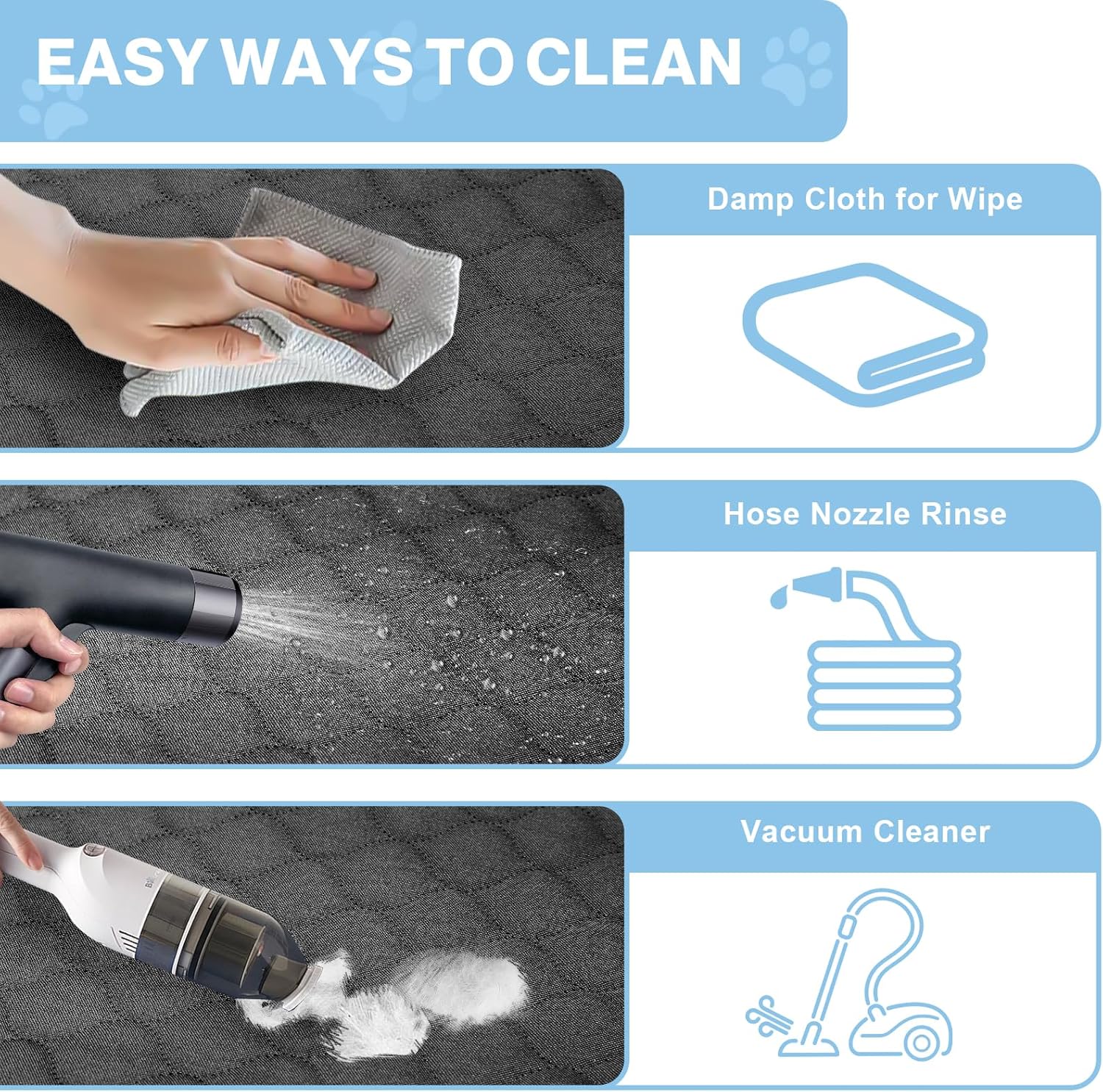 - Easy to Clean: Whether it’s mud, dust, or liquid spills, cleaning this car seat cover is a breeze. Simply hand wash, machine wash, or vacuum to keep it looking brand new. Say goodbye to complicated cleanups after each trip!