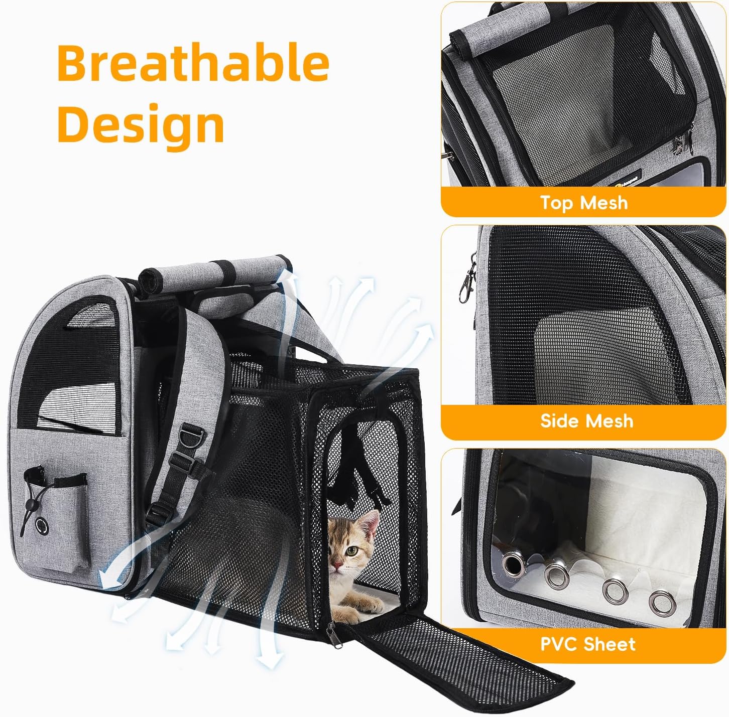 Hoopet Expandable Cat Backpack Carrier – Breathable Pet Carrier for Small Cats & Dogs, Foldable Travel Backpack with Mesh Ventilation for Hiking, Walking, Camping, Light Grey