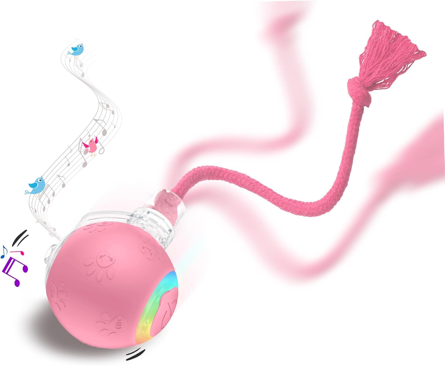 Interactive Cat Toys, Automatic Moving Cat Toys for Bored Indoor Adult Cats, Fast Rolling, Chirping & Motion-Activated Kitty Toys, Fun Gift for Cats with Speedy Tail 2.0, USB Rechargeable,Pink