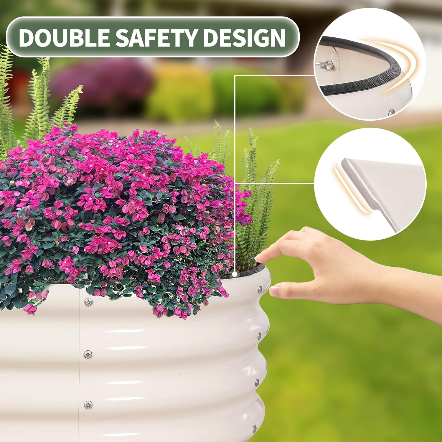- 【High-Quality Materials & Durable】 Made from 0.7mm metal panels with double-layer anti-corrosion, this outdoor raised garden bed features a robust oval-shaped design for added strength and durability. Resistant to rust and corrosion, it provides a long-lasting gardening solution that can be reused for many years, ensuring a sustainable and reliable space for your plants to thrive