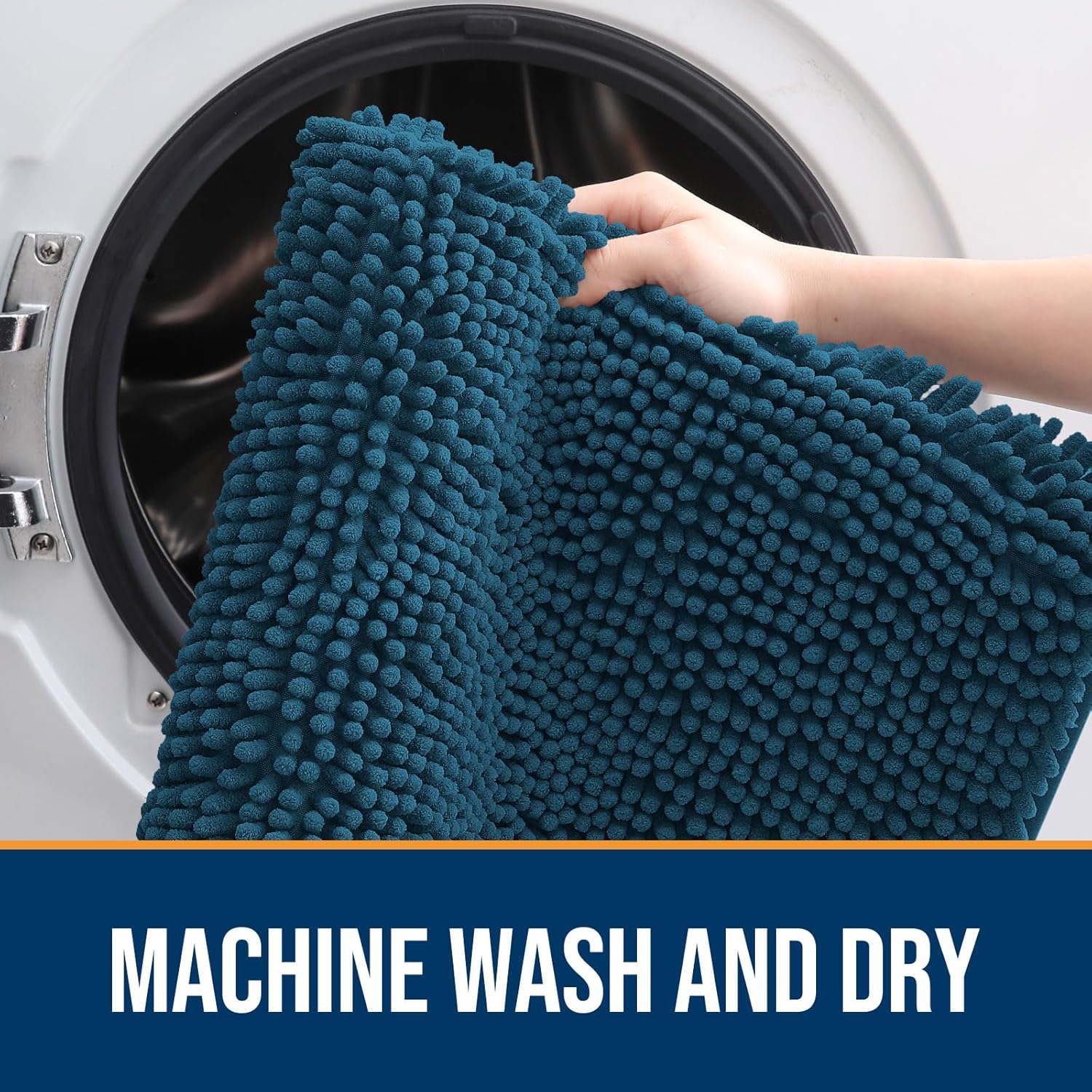 OLANLY Dog Door Mat for Muddy Paws 47x17, Absorbs Moisture and Dirt, Absorbent Non-Slip Washable Doormat, Quick Dry Chenille Mud Mat, Entry Indoor Entryway Carpet for Inside Floor, Atlantic Blue