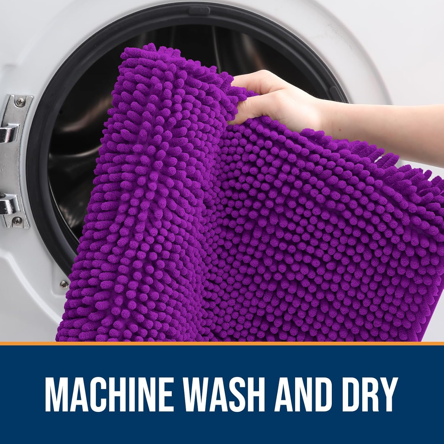 OLANLY Dog Door Mat for Muddy Paws 40x32, Absorbs Moisture and Dirt, Absorbent Non-Slip Washable Doormat, Quick Dry Chenille Mud Mat for Dogs, Entry Indoor Entryway Carpet for Inside Floor, Purple