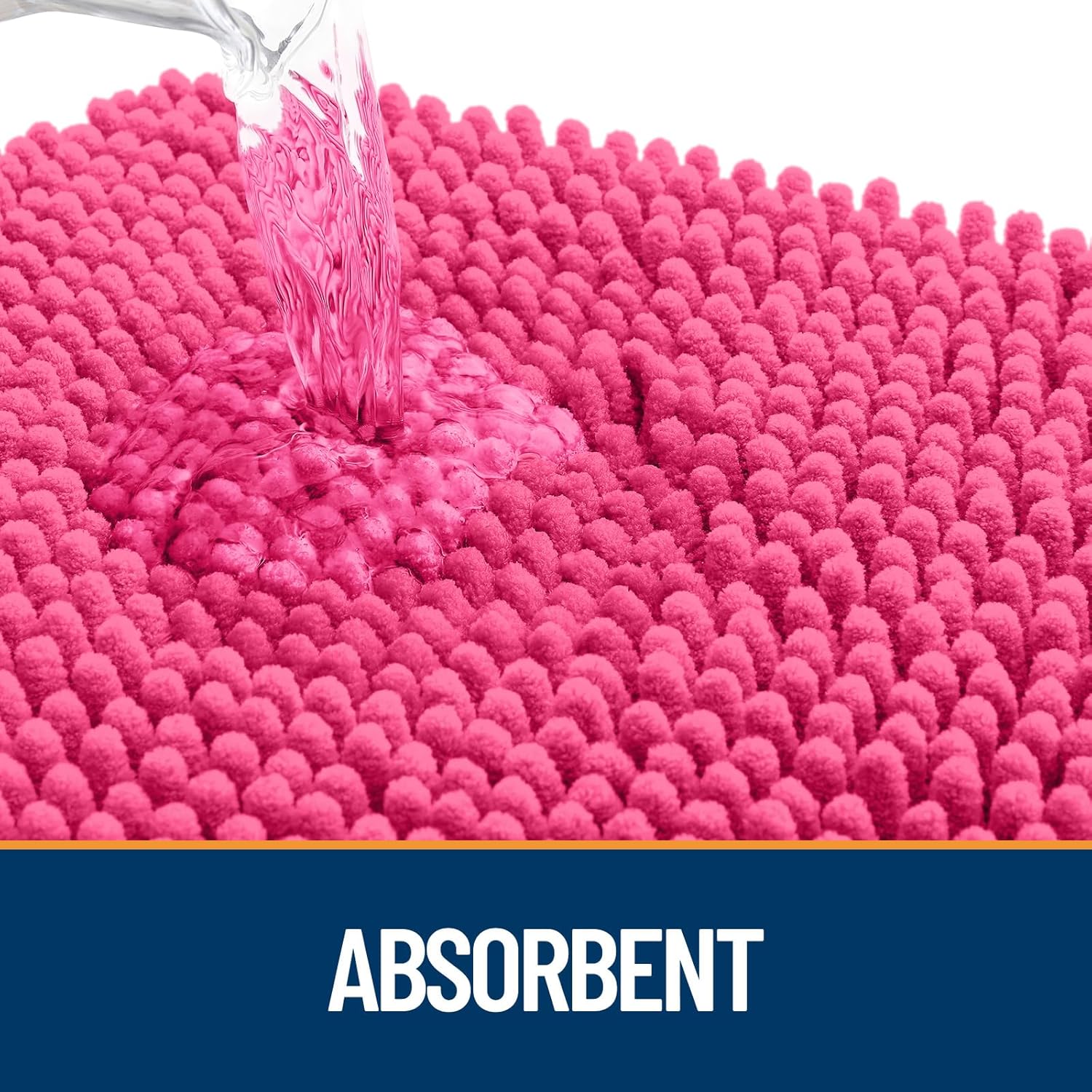 OLANLY Dog Door Mat for Muddy Paws 44x32, Absorbs Moisture and Dirt, Absorbent Non-Slip Washable Doormat, Quick Dry Chenille Mud Mat for Dogs, Entry Indoor Entryway Carpet for Inside Floor, Hot Pink
