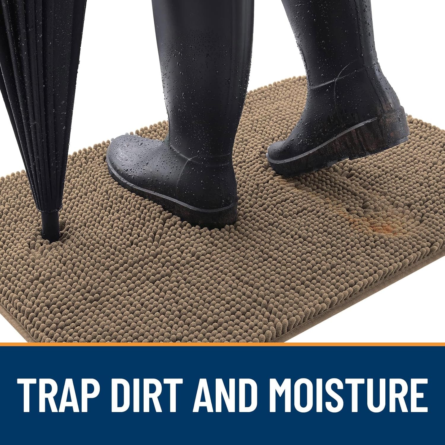OLANLY Dog Door Mat for Muddy Paws 40x24, Absorbs Moisture and Dirt, Absorbent Non-Slip Washable Doormat, Quick Dry Chenille Mud Mat for Dogs, Entry Indoor Entryway Carpet for Inside Floor, Tan