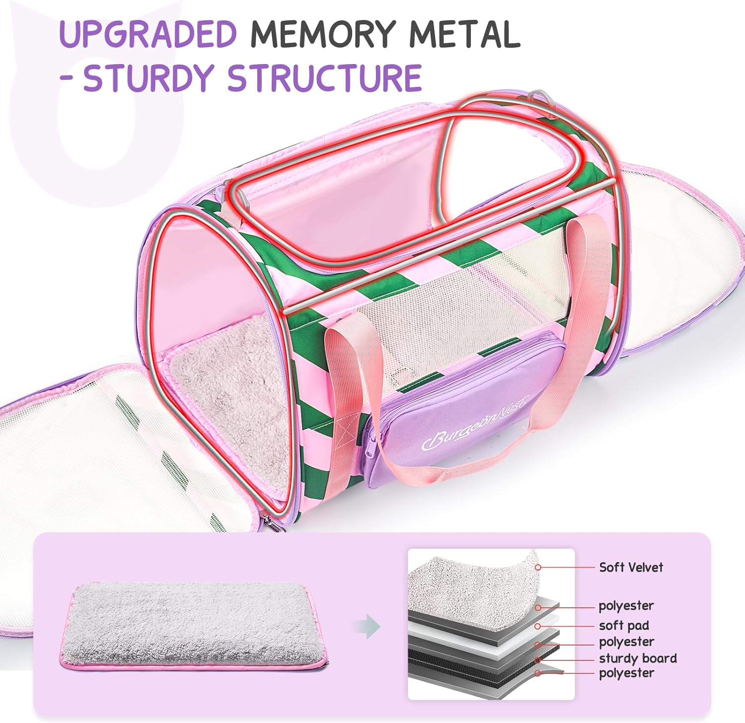BurgeonNest Cat Carrier, Dog Cat Carriers for Large Medium Cats Under 20 lbs, Soft Sided Pet Carrier, Collapsible Travel Carry Puppy Kitten Cat Carrier with Big Side Bag (Medium, Pink-Green)