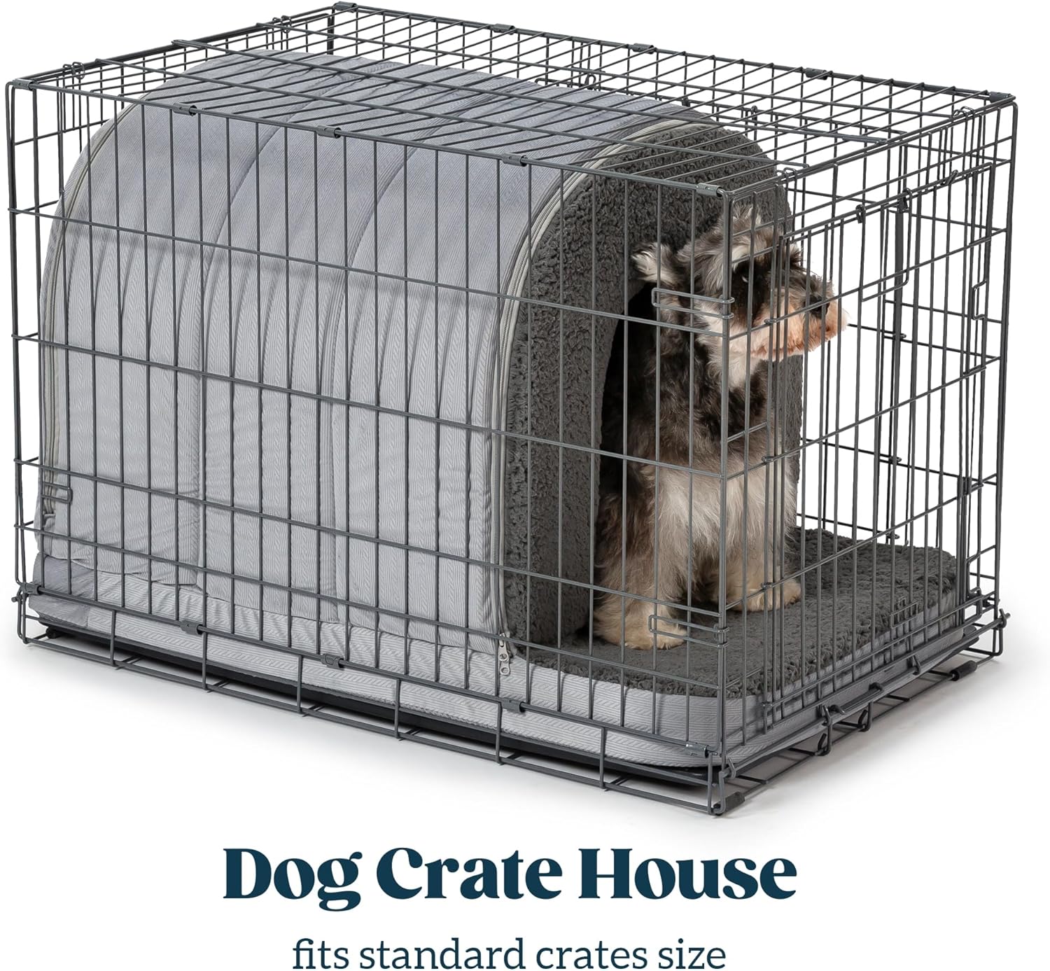 - Fits Standard Crates - The inside dog house is compatible with 24 inch long dog crates and works perfectly as a stand-alone covered dog bed | dog bed with cover cave is ideal for small dog breeds weighing up to 11-25 pounds