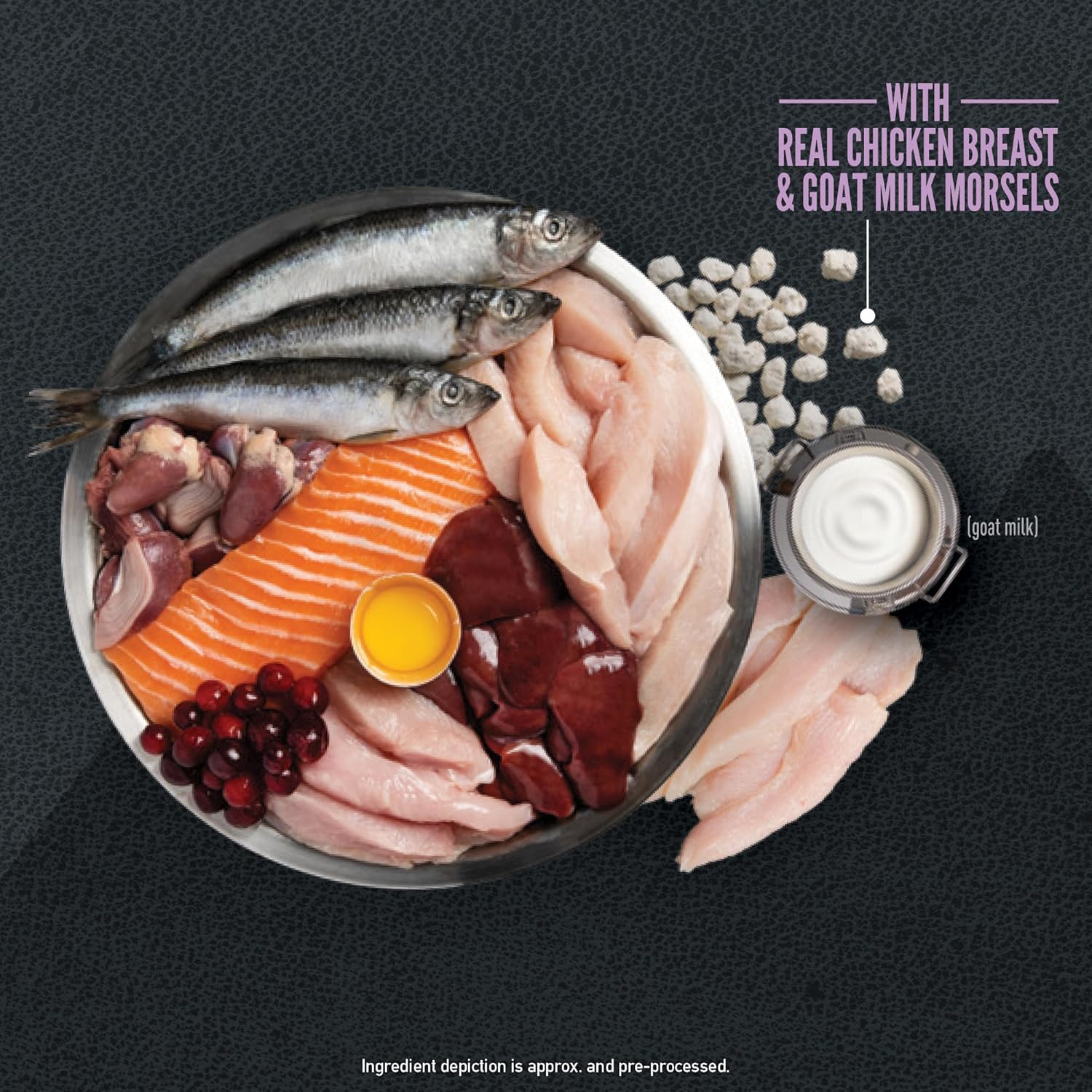 - High protein cat food includes real chicken breast and goat milk morsels you can see, freeze-dried to lock in flavor and nutrition.