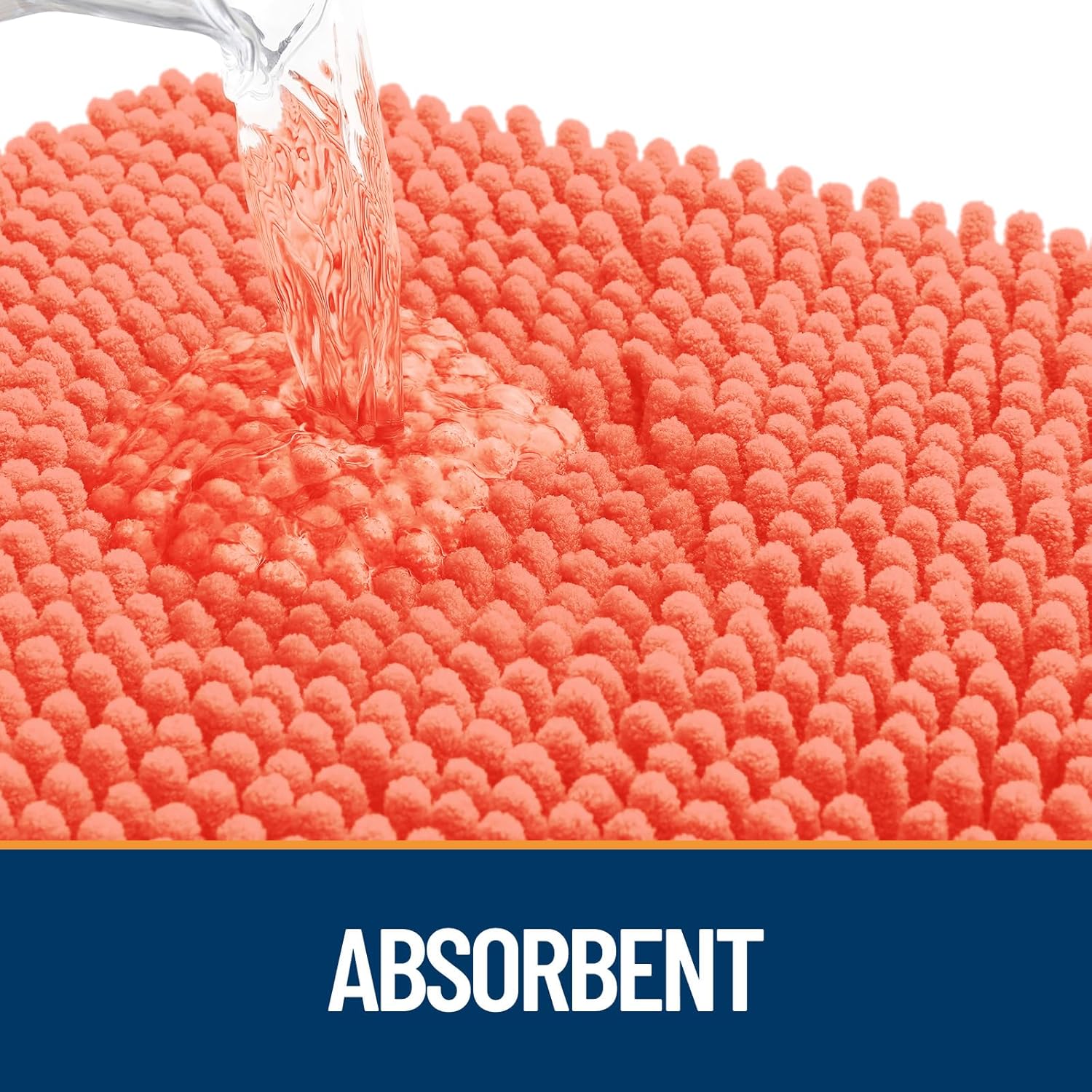 OLANLY Door Mat for Muddy Dog Paws 36x24, Ultra Absorbent Chenille Mud Doormat with Paw Print Design, Non-Slip Washable Doormat for Indoor Entryway, Quick-Dry Pet Bed Mats for Dirty Dogs, Coral