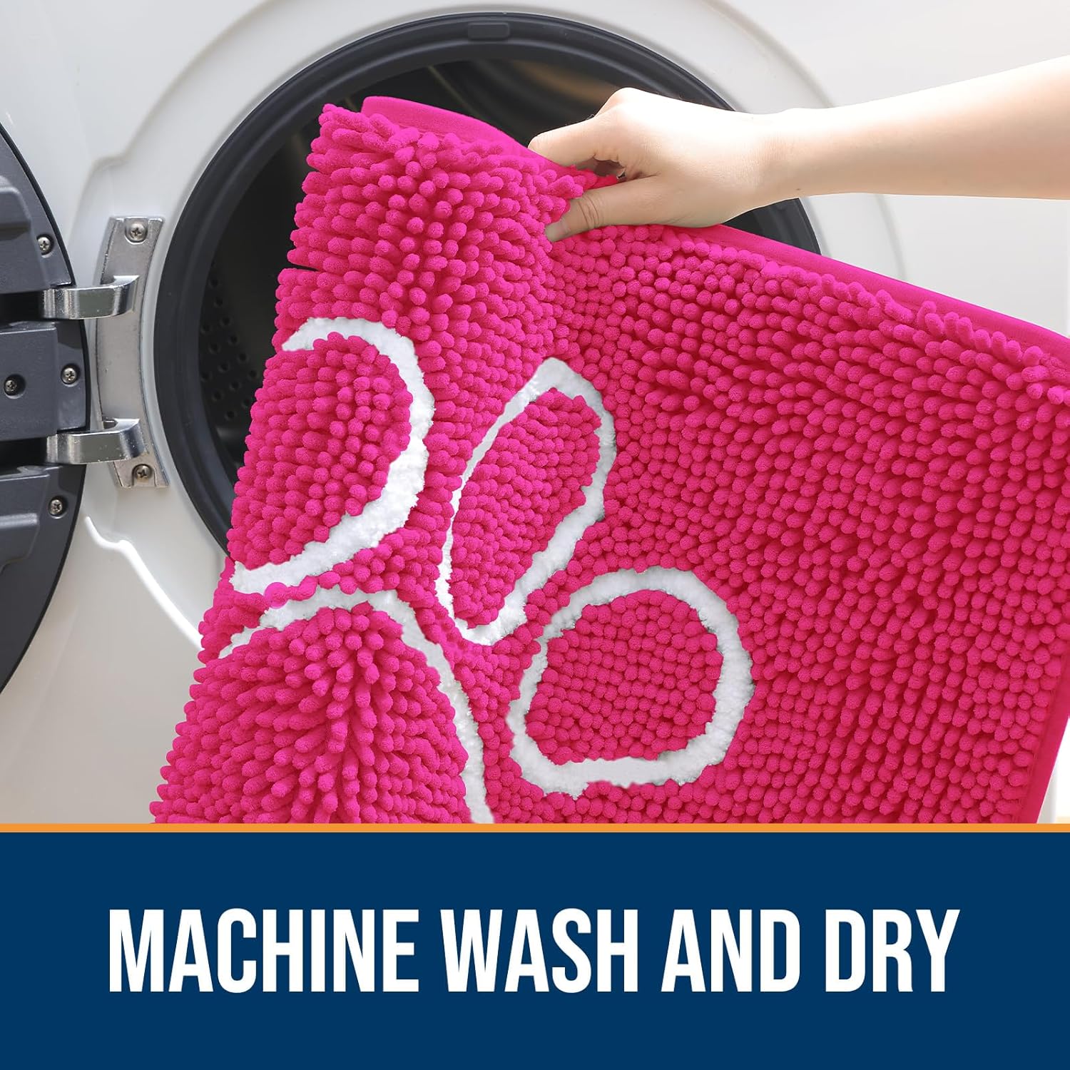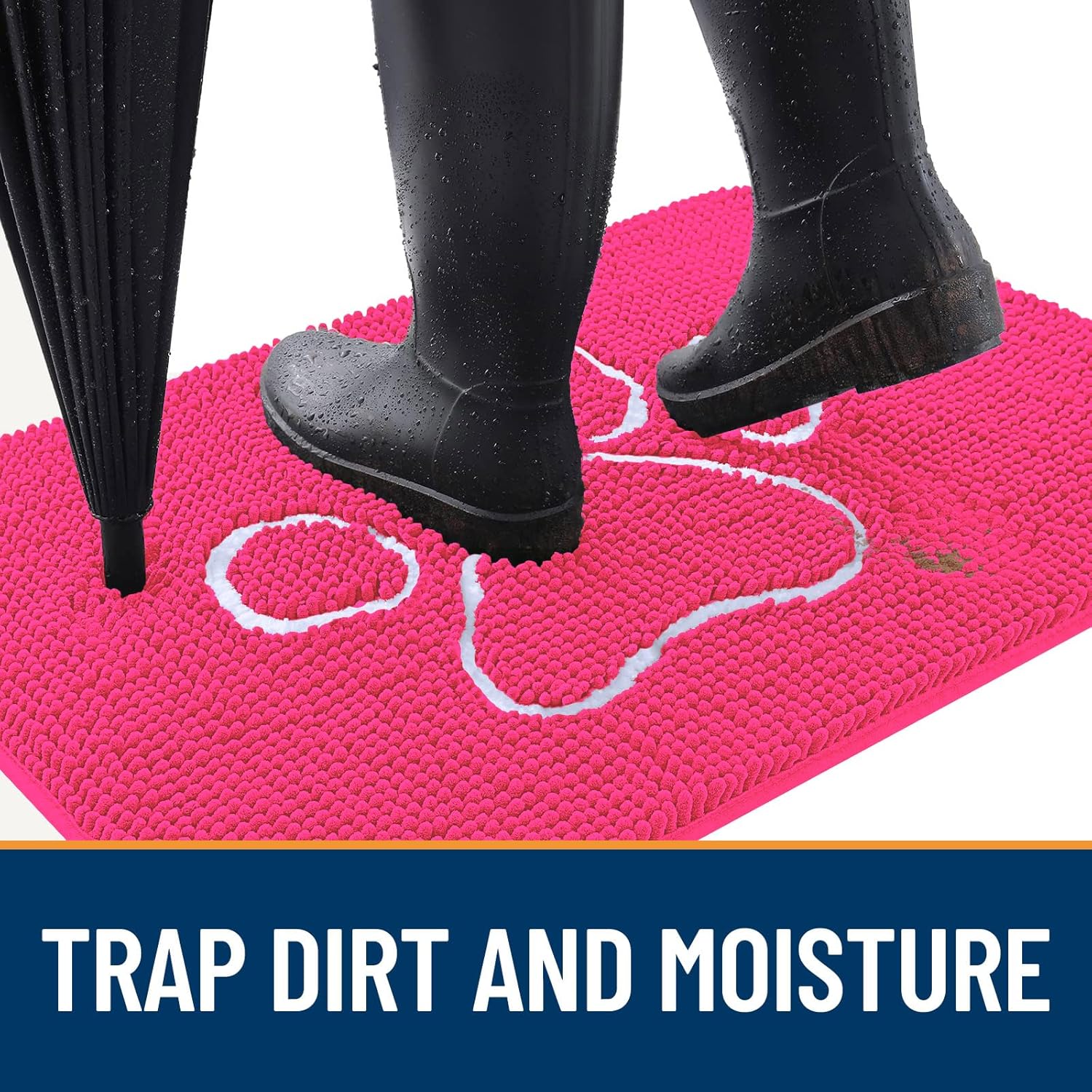 OLANLY Door Mat for Muddy Dog Paws 30x20, Ultra Absorbent Chenille Mud Doormat with Paw Print Design, Non-Slip Washable Doormat for Indoor Entryway, Quick-Dry Pet Bed Mats for Dirty Dogs, Hot Pink