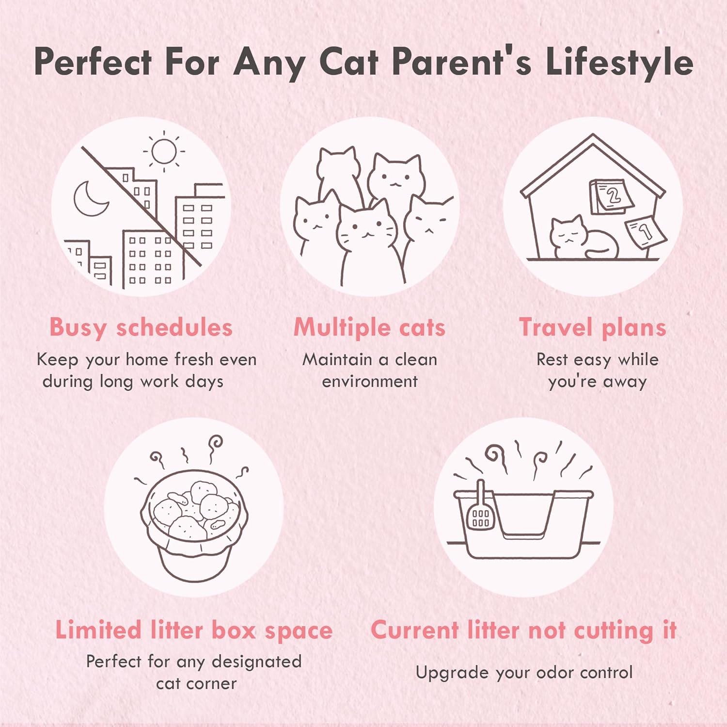- Advanced Cation Odor Control – Eliminate odors with the power of cation technology, ensuring your litter box stays fresh and pleasant for your cat and family.