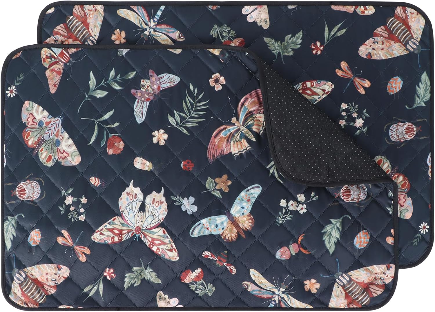 IEUUMLER Washable Pee Pads for Dogs, 2 Pack Insect Pattern Reusable Waterproof Puppy Potty Pads, Non-Slip Absorbent Pet Training Pads for Playpen Crate Bed EU014