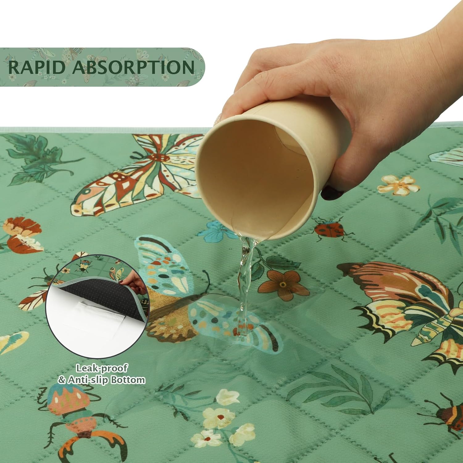 IEUUMLER Washable Pee Pads for Dogs, 2 Pack Insect Pattern Reusable Waterproof Puppy Potty Pads, Non-Slip Absorbent Pet Training Pads for Playpen Crate Bed EU014
