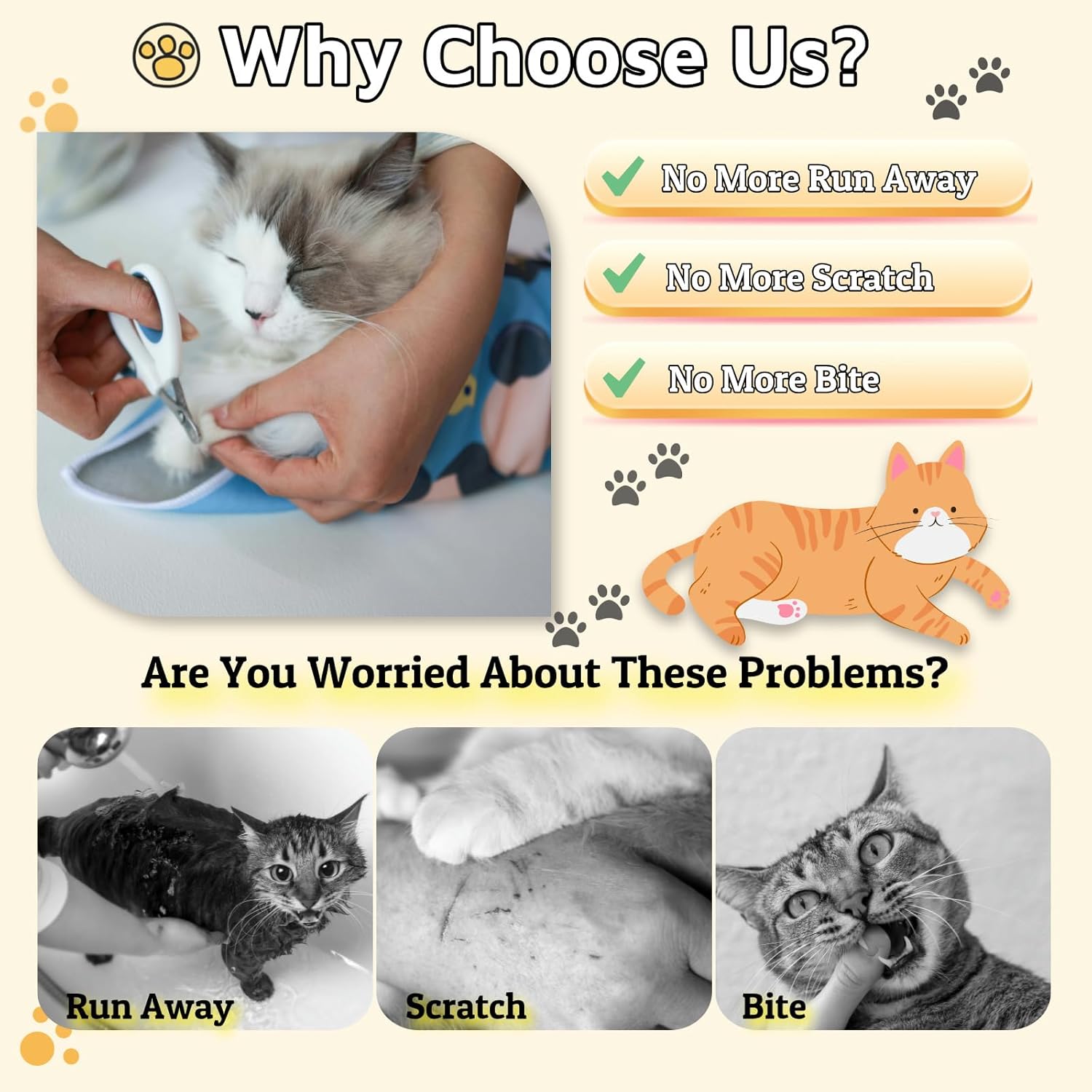 - 【Multifunctional Cat Wrap】Whether you need to trim nails, clean ears, brush teeth or administer medication, administering injections, and more, our cat swaddle wrap can meet your cat care needs. Its suitable size and lightweight design make it the best choice for daily cat care.