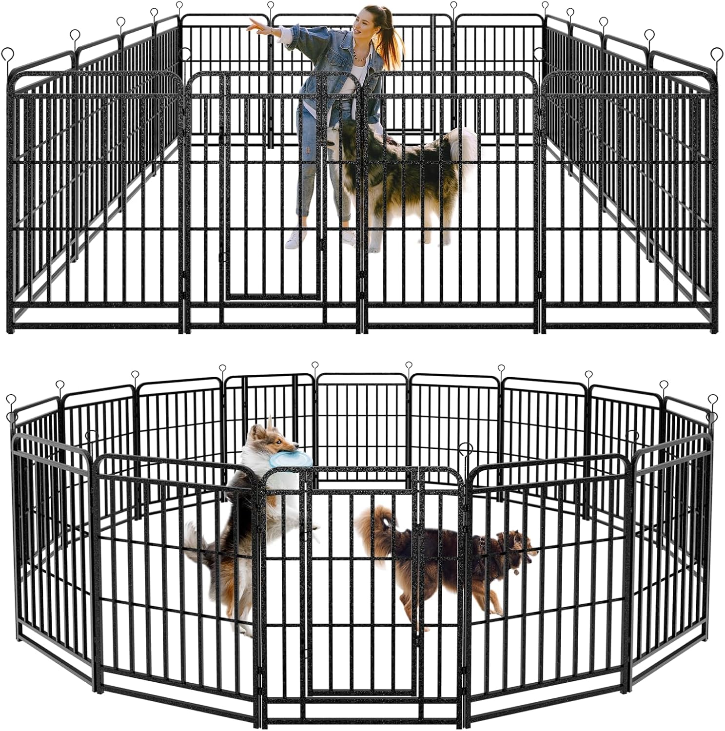 Dog Playpen Outdoor 16 Panels Heavy Duty Dog Fence 40" Height with Thick Pipe Anti-Rust with Doors Portable for RV Camping Yard, Total 36FT, 103 Sq.ft, Snowy Black