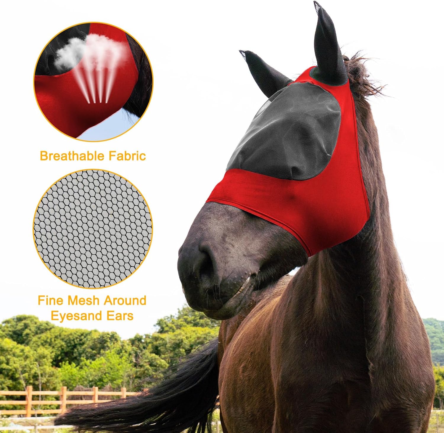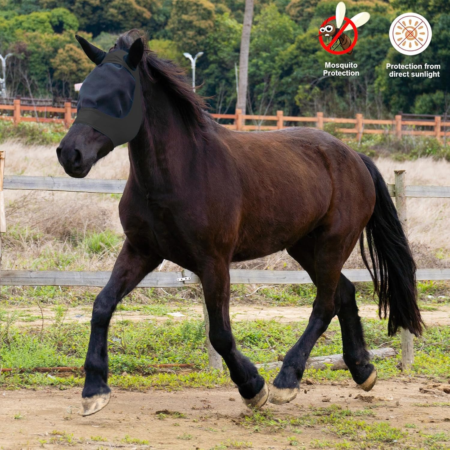 - PROTECTION: Full-coverage mesh horse fly mask shields your horse's face, eyes, and ears from harmful UV rays, dust, and pesky insects