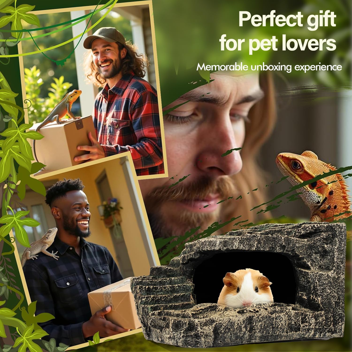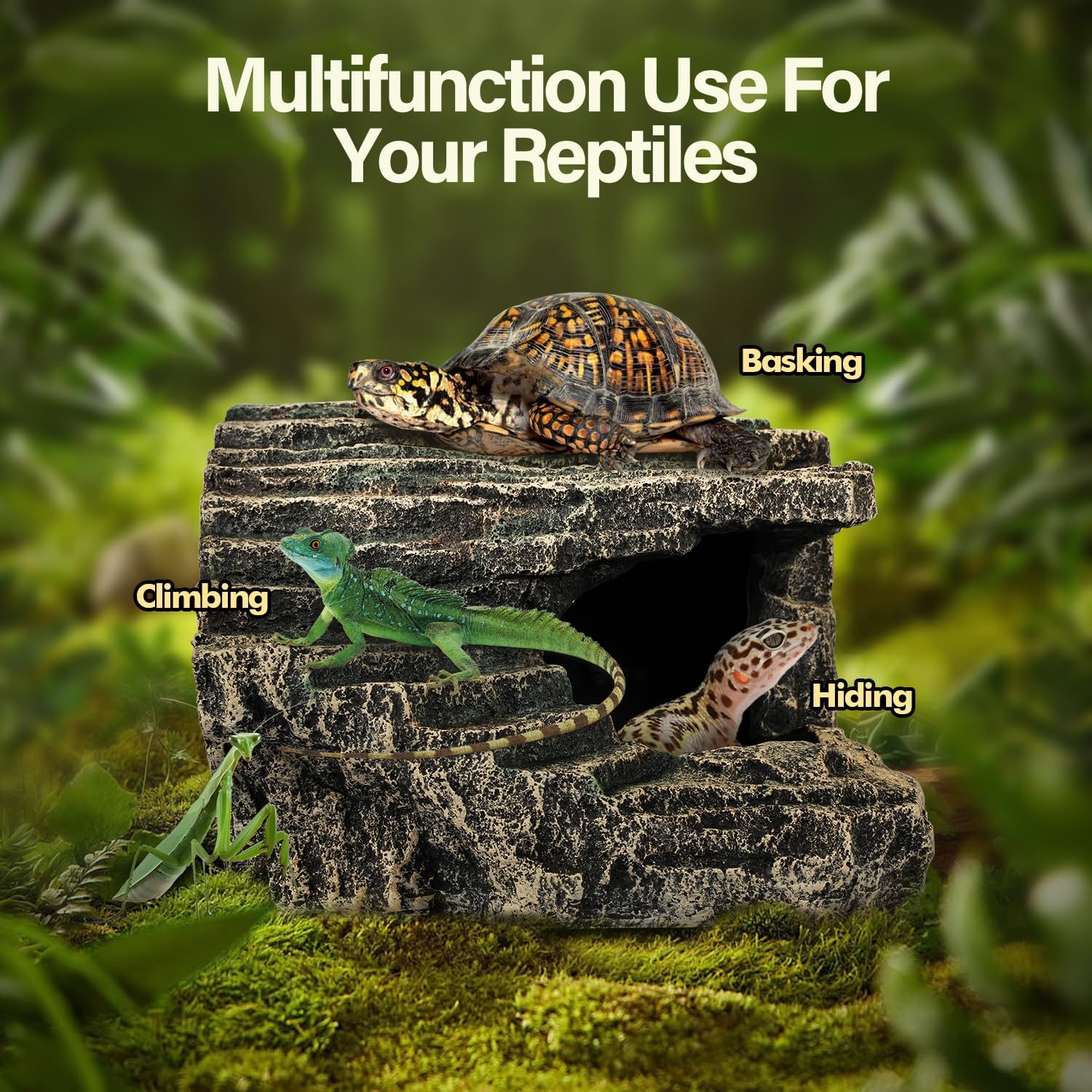 - IDEAL REPTILE BASKING ROCK: This hideout doubles as an excellent reptile basking rock. It offers a perfect spot for your reptile to soak up warmth and light. Whether your pet is a bearded dragon or a gecko, they'll enjoy relaxing on it, making it an essential part of their habitat