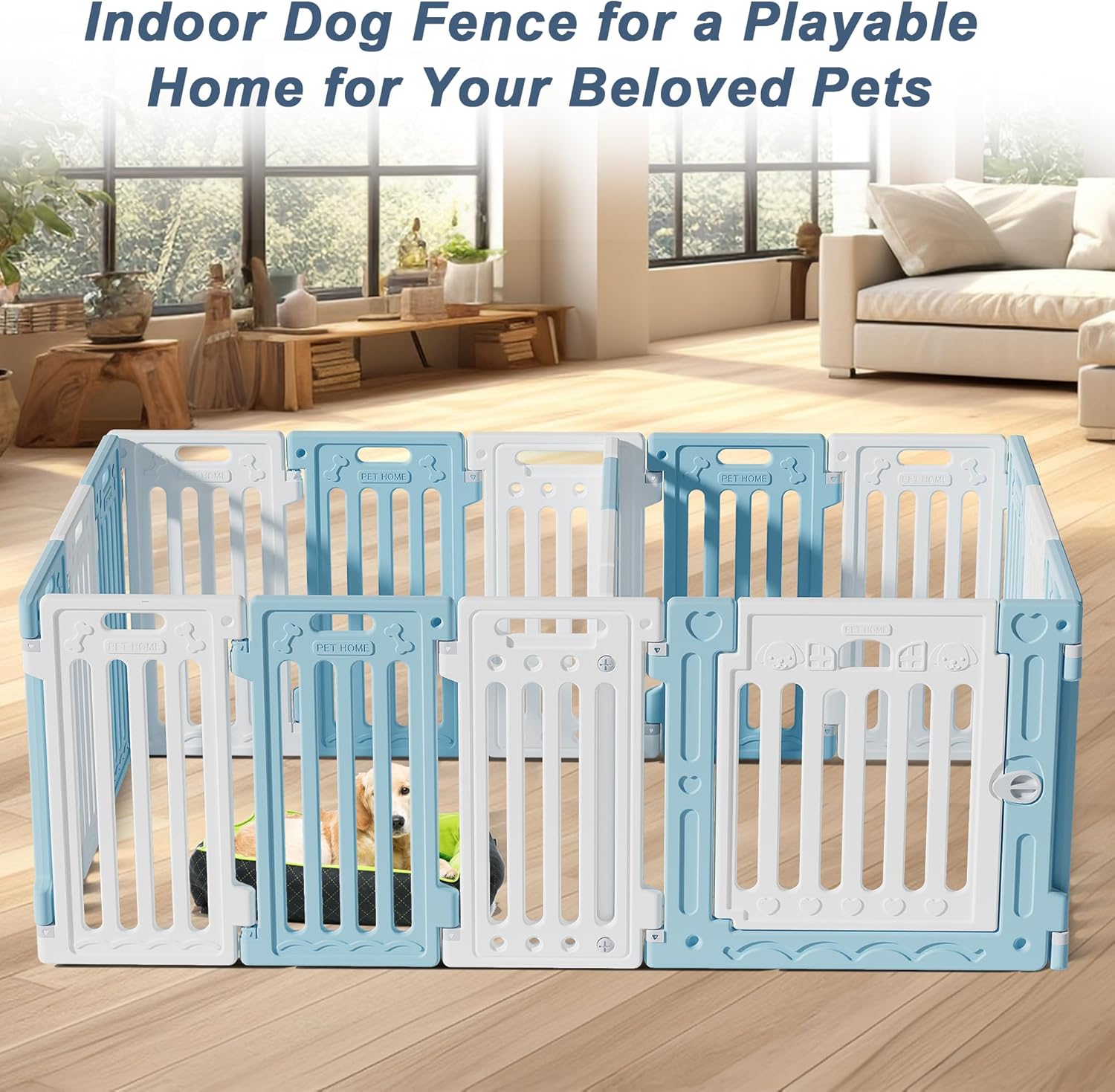 - FLEXIBLE SPACE COMBINATION: The dog playpen indoors has can be assembled into 3 space modes, ideal for multi-dog families to separate activity areas and can also be used to plan the dog's dining area,your dog will love having his own space.