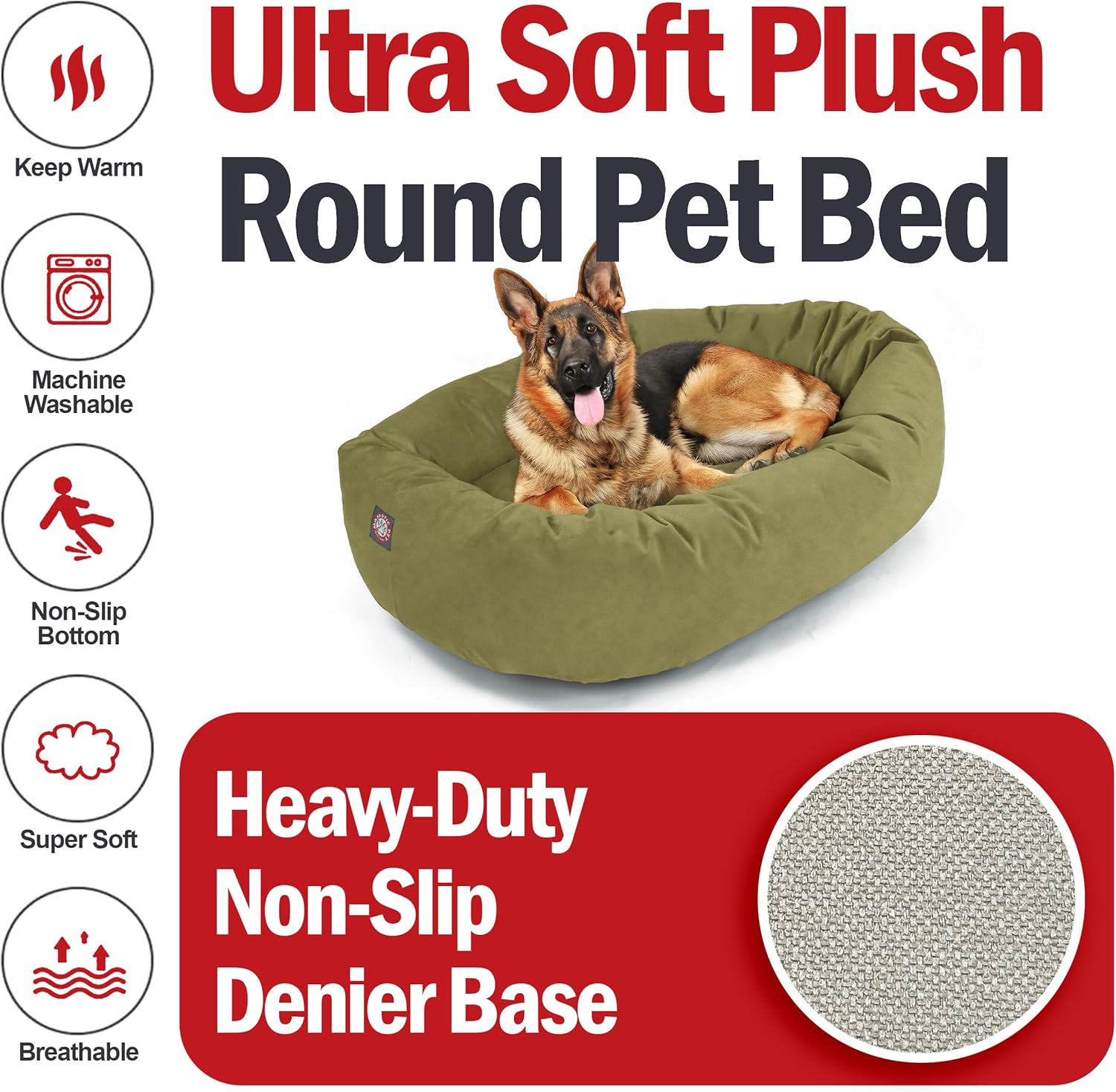 - [Elegance meets durability] - Crafted with premium high-loft polyester fill, the Majestic Pet dog bed offers a regal sleeping experience, lasting quality, and exceptional loft and coziness. The cushioned pillow adds an extra layer of comfort to pamper your pet. No more compromising on comfort, style, or ease of cleaning. Upgrade your pet's lifestyle today with our round dog bed.