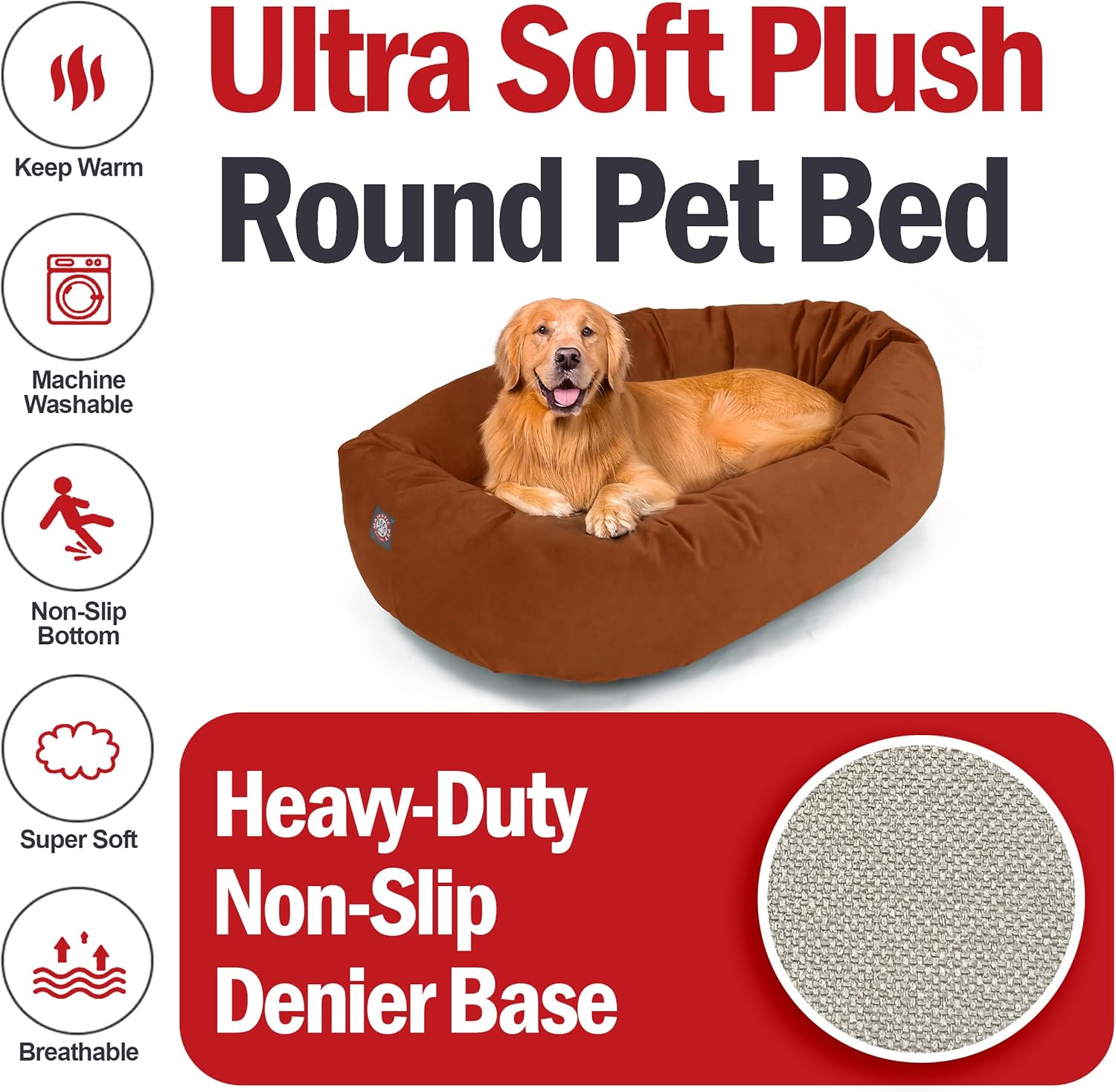 Majestic Pet 40 Inch Suede Calming Dog Bed Washable 40x29x9 (Inch) – Cozy Soft Round Donut Dog Bed with Spine Support for Dogs to Rest Their Head - Pet Bed Large – Rust (2025)