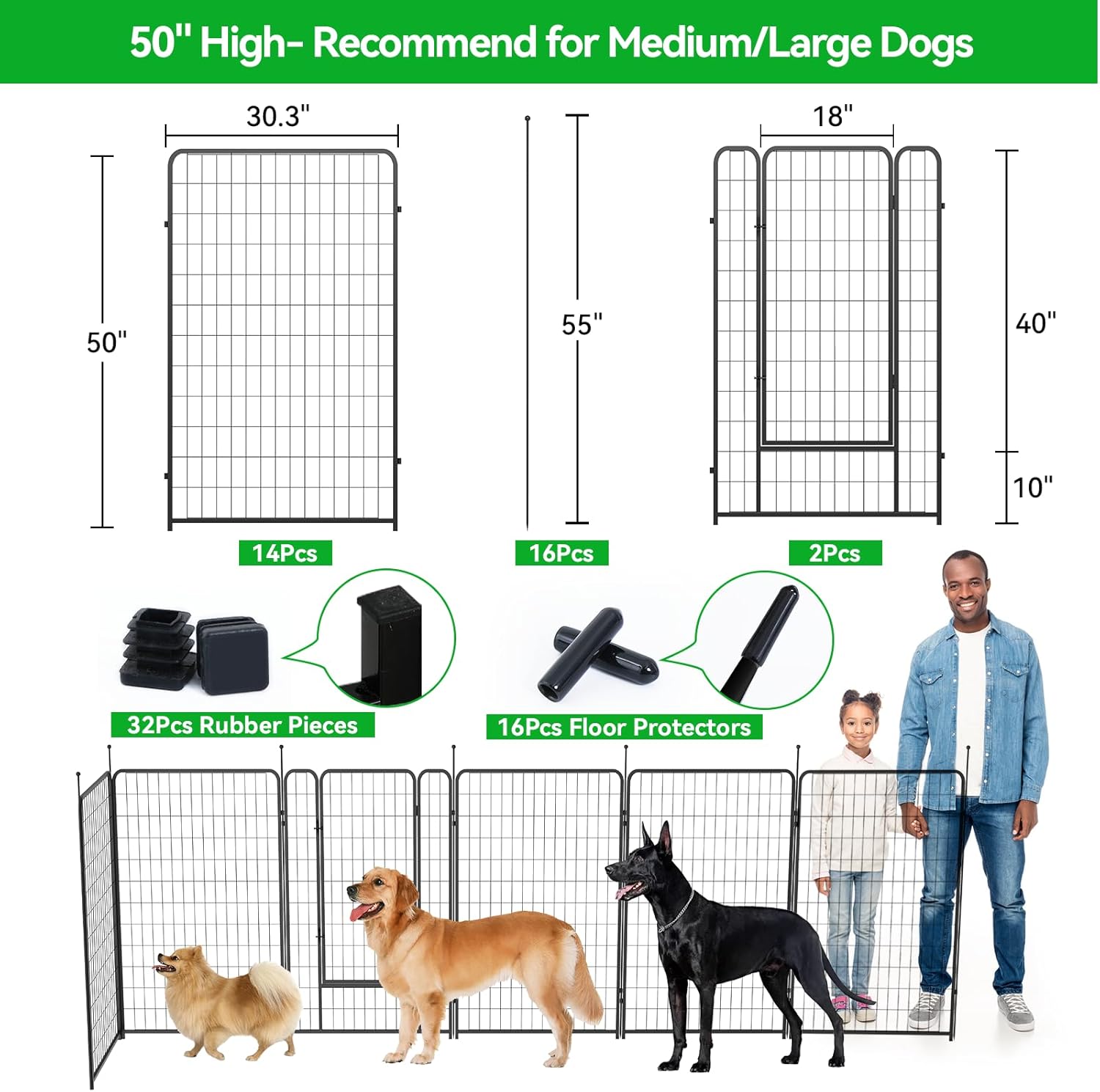 Dog Playpen Outdoor 16 Panels Heavy Duty Dog Pen 26" W×50" H Anti-Rust Exercise Fence with Doors for Large/Medium Pet Play for RV Camping Yard