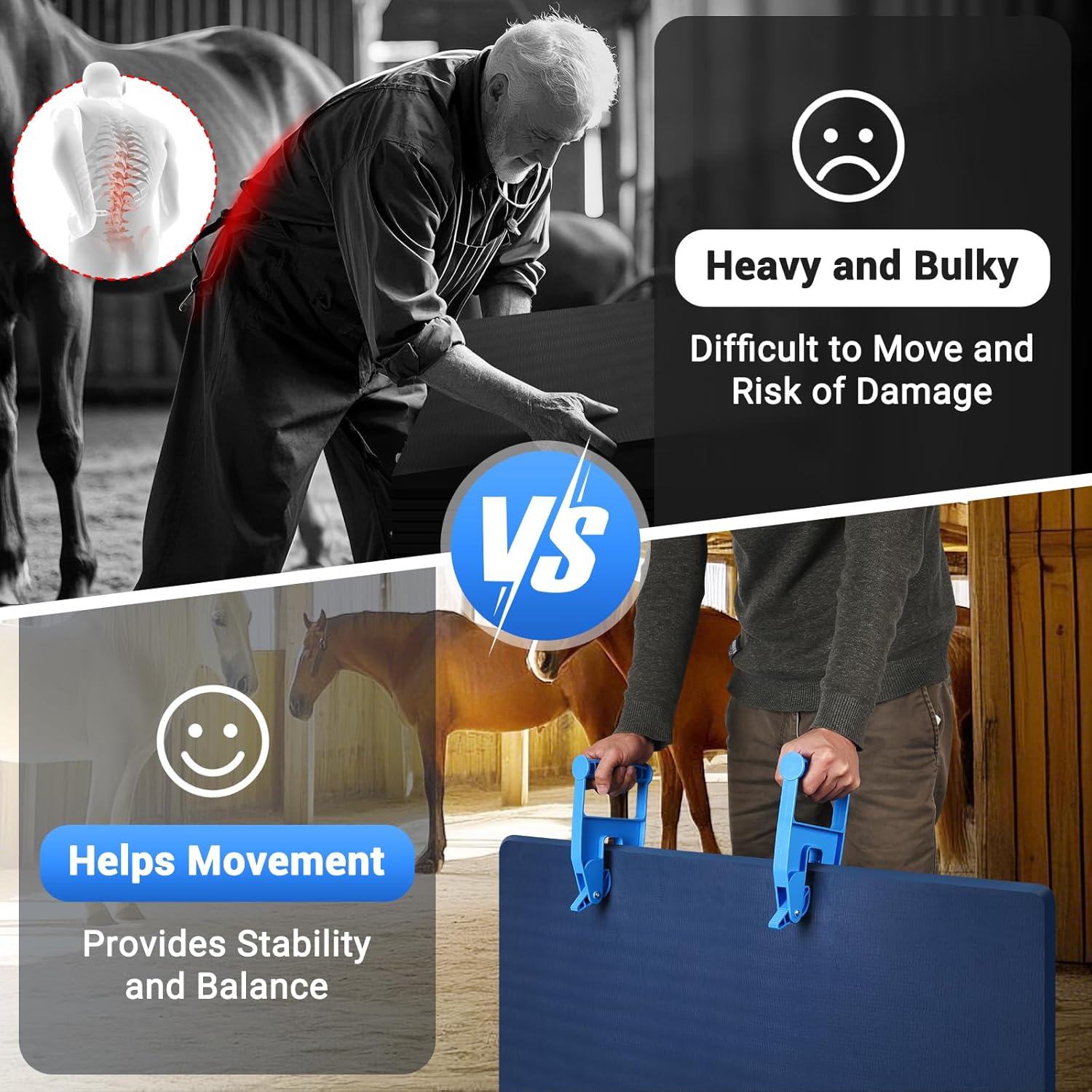 - [Pair of Stall Mat Mover Tool]This Stall Mat Handler is specifically designed for moving and adjusting horse mats. The Mat Gripper features clamps for easy lifting of mats, making transportation and storage convenient while eliminating the hassle of manual handling. This tool keeps mats clean and tidy, saving time on organizing and cleaning, and improving efficiency.