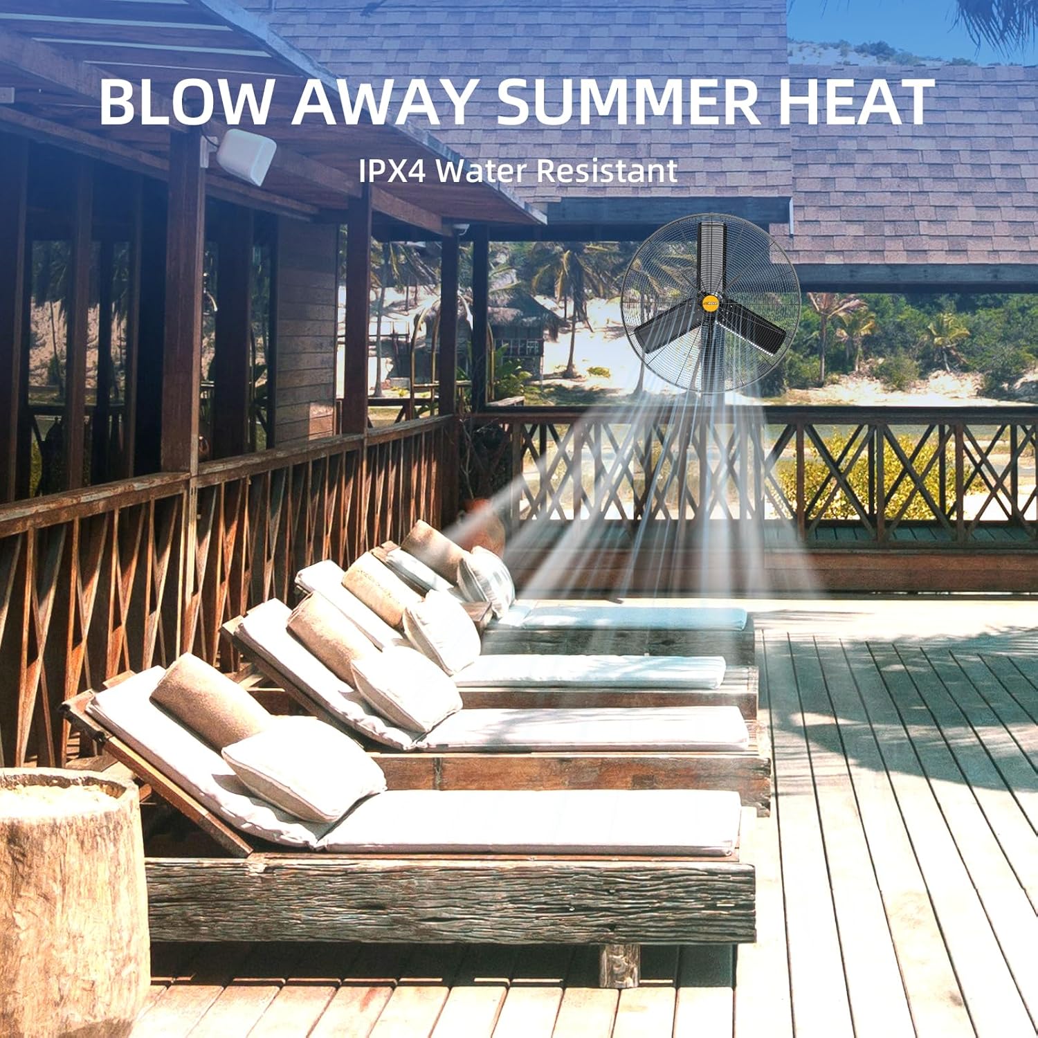 24 inch Outdoor Oscillating Wall Mounted Fan, High Velocity IPX4 Waterproof 7600 CFM Industrial Metal Wall Fan, 2 Speed, Adjustable Tilt, for Greenhouse, Patio, Garage, Workshop